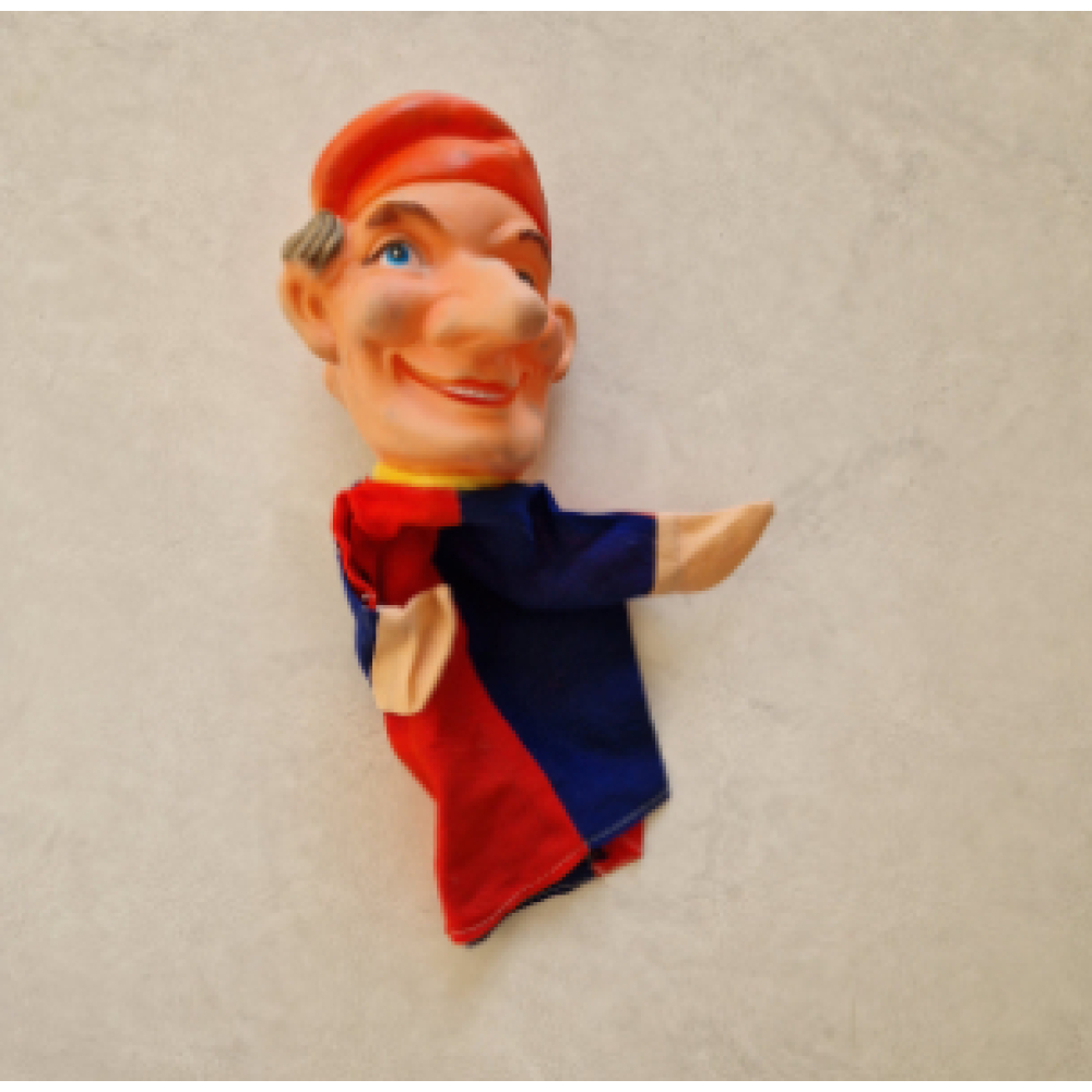 This is a lot of 5 vintage handpuppets. They have rubber faces and fabric cloth bodies. They are original from the sixties, seventies and are in a good vintage used condition. The pictures are part of the description.