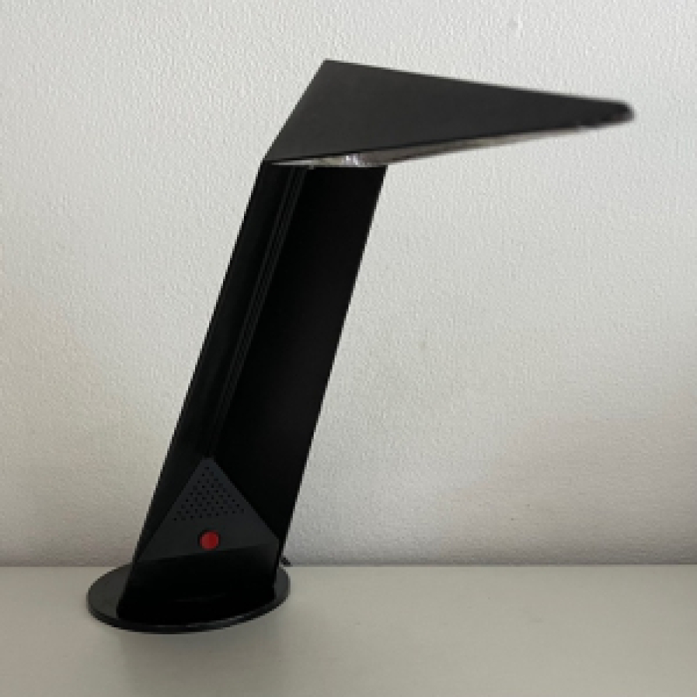 Concorde desk lamp designed by Yves Christin for Antonangeli Illuminazioni. Gorgeous design lamp to place on a table, desk or cupboard. This lamp can rotate 180 degrees and is original from the seventies. Black colored metal with a red plastic on and off button.