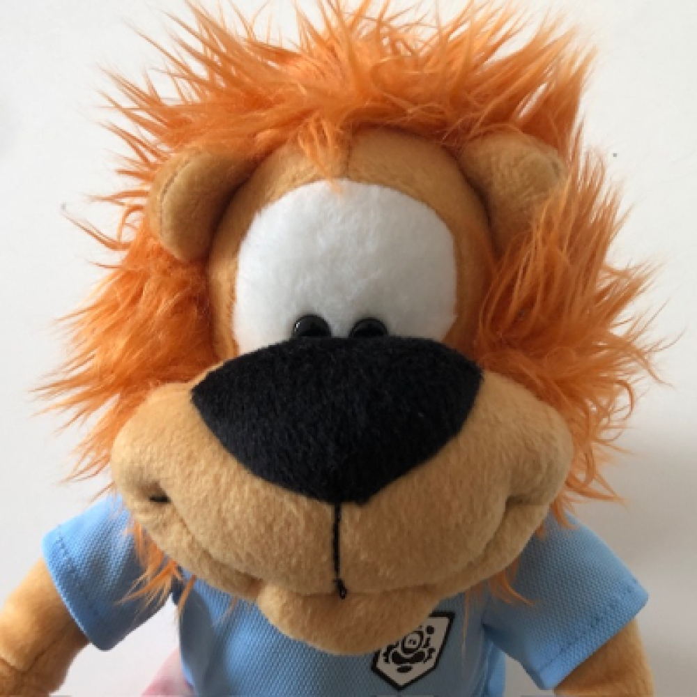 Loeki de leeuw is for many years the famous lion Intro of the Dutch TV (STER) commercials. Loeki the lion which was and is iconic for the commercials on the Dutch television. Vintage Loeki stuffed teddy / toy animal in a blue football / soccer outfit, no. 5.