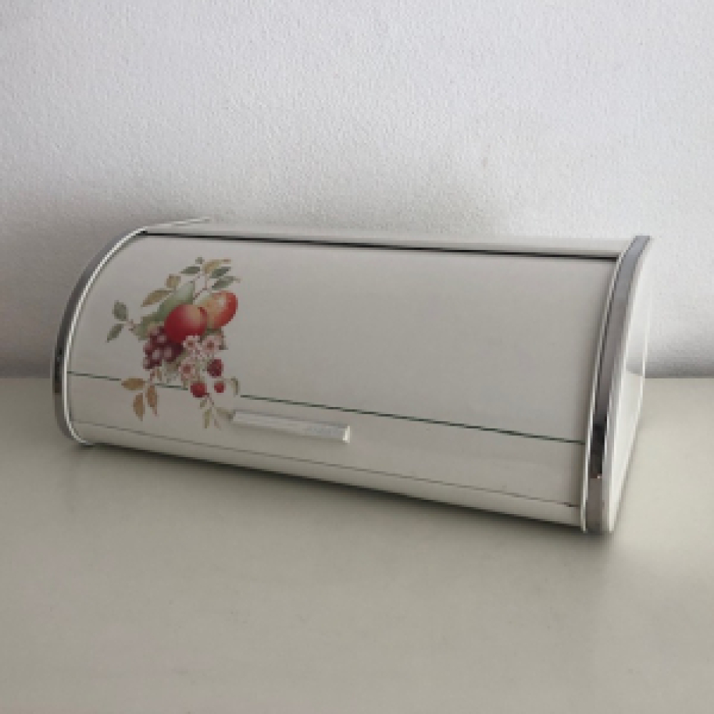 Rectangular Brabantia creme white / beige breadbin with fruit decor from the eighties