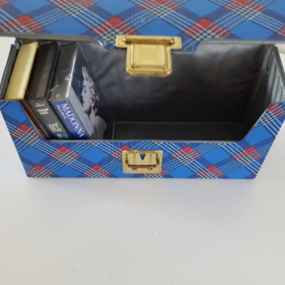 Handy cassettes tapes case from the sixties - seventies. Blue checked music cassette case has space for 12 music cassettes.