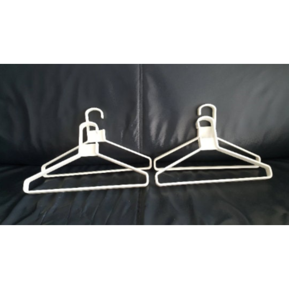 Modern thick plastic clothes hangers designed by Maija Ruoslahti Design MK Karhumovi OY. Original from the 1970s and produced in Finland. Post Modern Panton design era. The coat hangers are in a good vintage used condition and can have signs of usage like you would see by this age, see pictures. The pictures are part of the description.