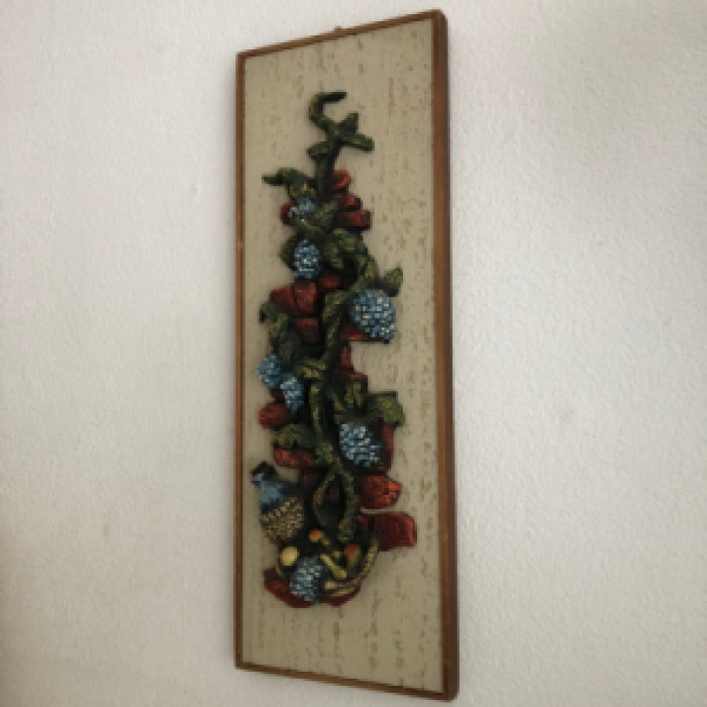 Vintage ceramic wall decoration with cool 3D wine / vines design