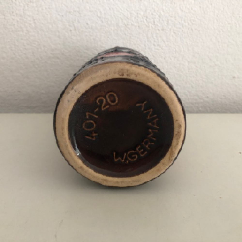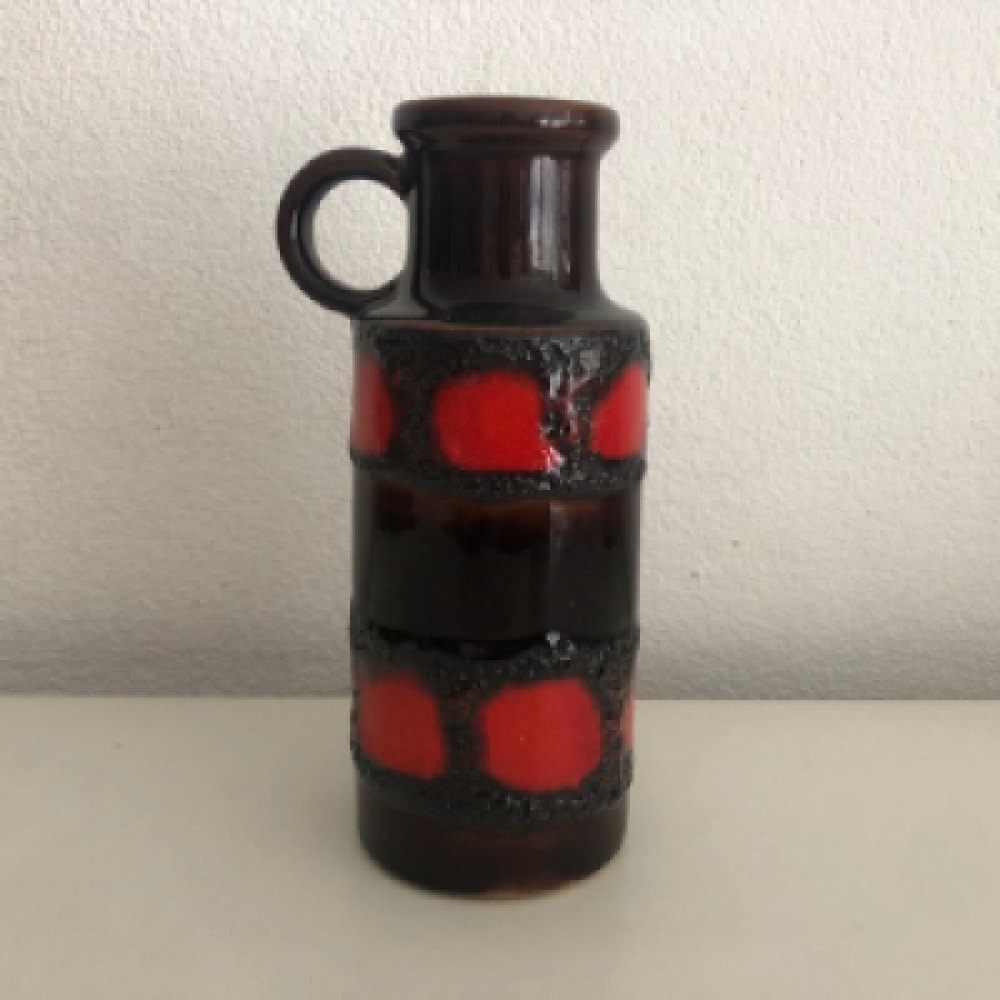 Beautiful Fat Lava vase with a handle on the topside of the vase.
