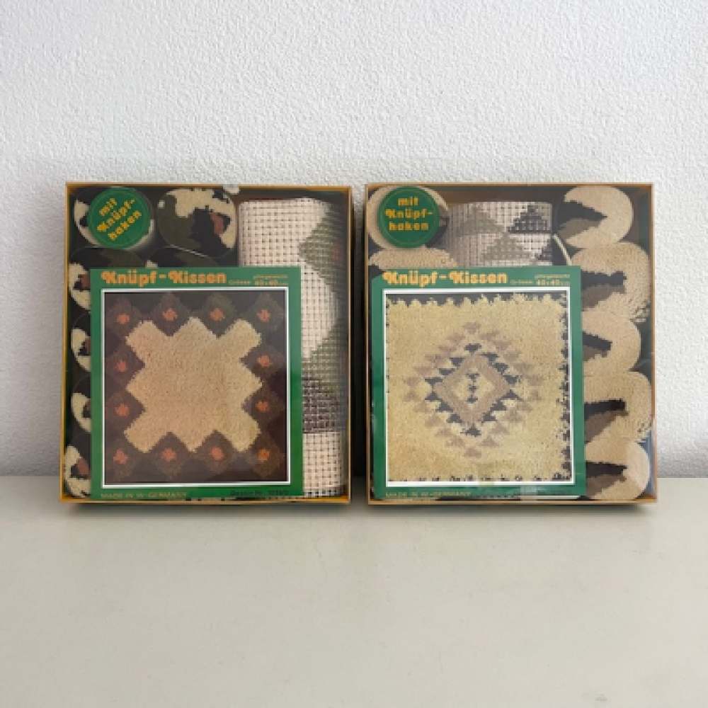 2 Different vintage cushion knotting sets for knotting your own pillow;