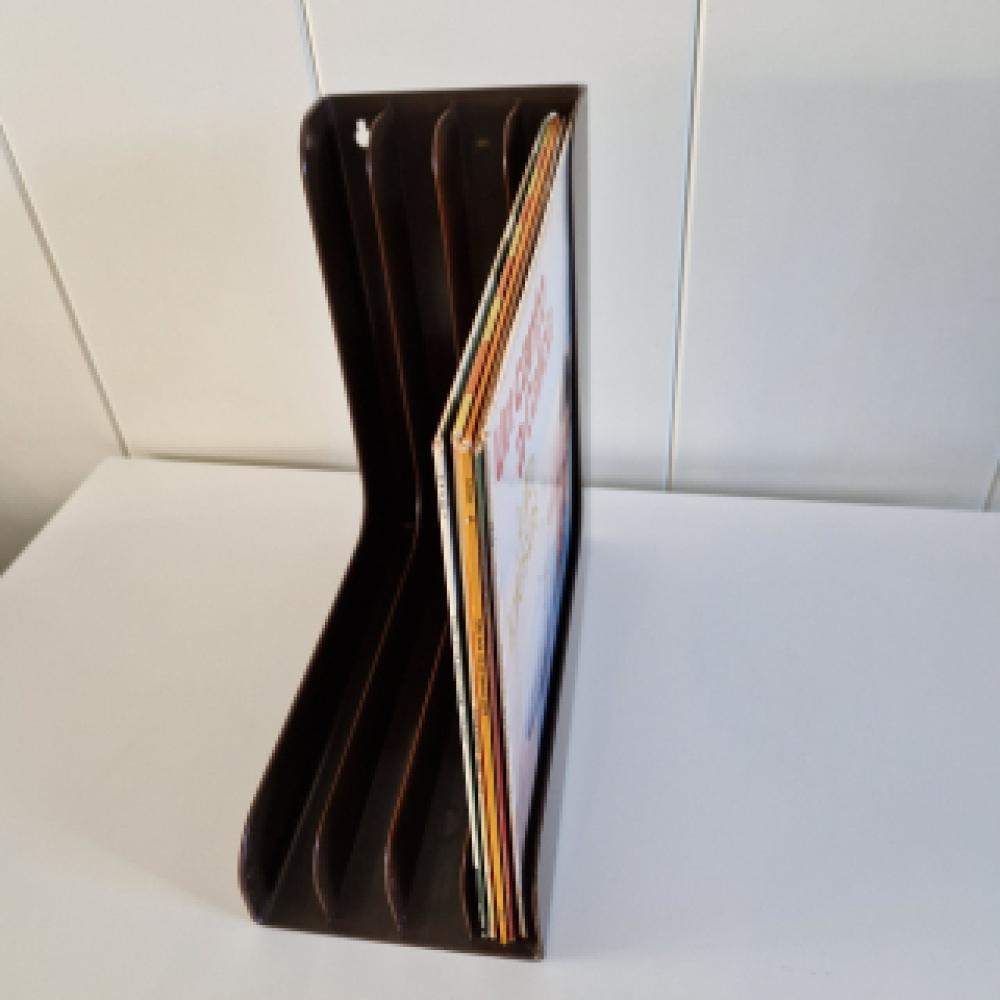 It has 4 sections and can hold up to total of 35 / 40 vinyl lp records.