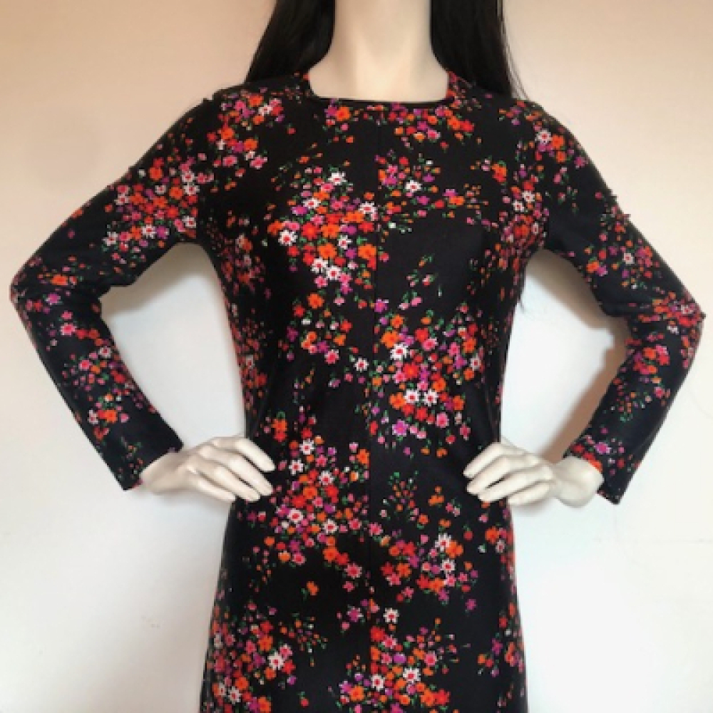 Long midi dress in a lovely flower power design with a good working zipper.