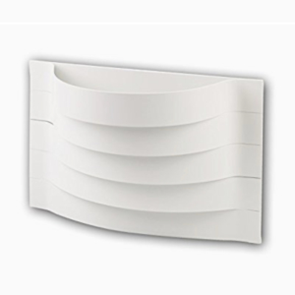 Vintage space age design wall lamp; white metal slats sort of shaped like a wave. The lamp is in a good vintage used condition, see pictures. The pictures are part of the description.