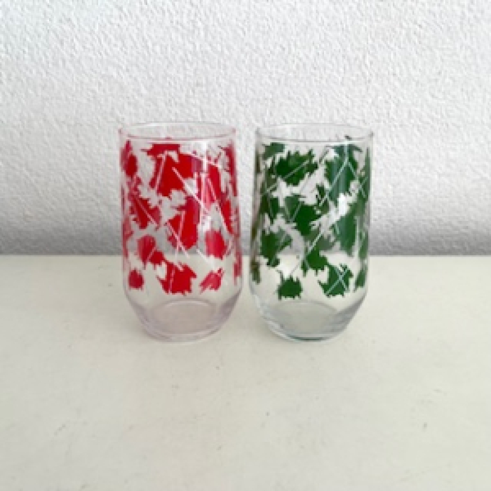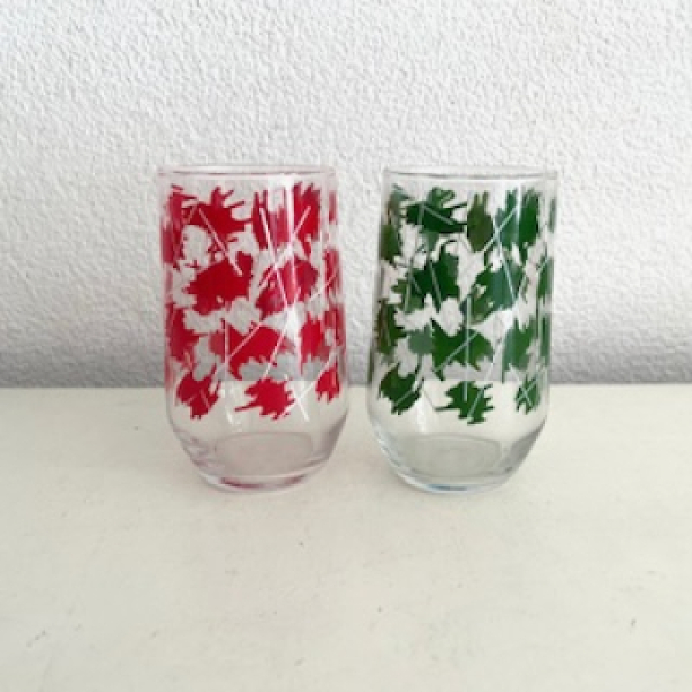 Twee leuke 60er jaren glazen met een funky decor herkenbaar uit die tijd. Leuke set van 2 glazen.