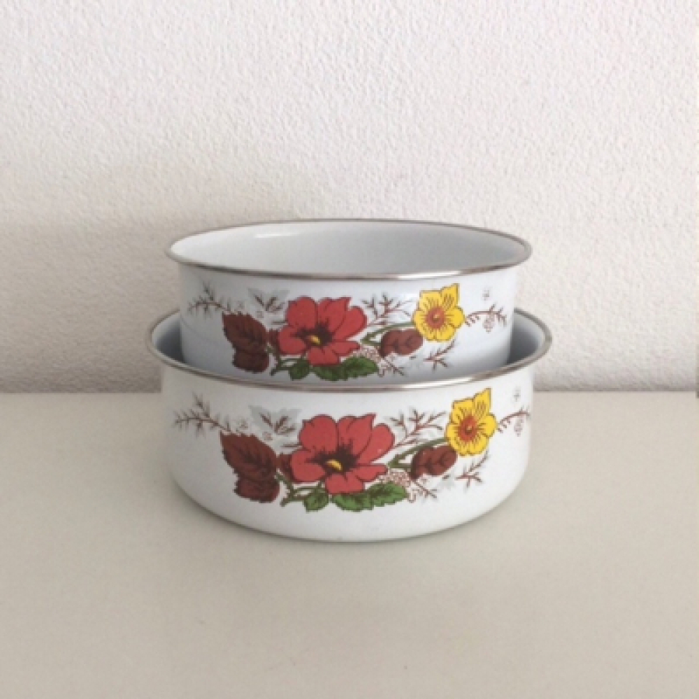 Retro emaille keuken schalen met leuke bloemen print
