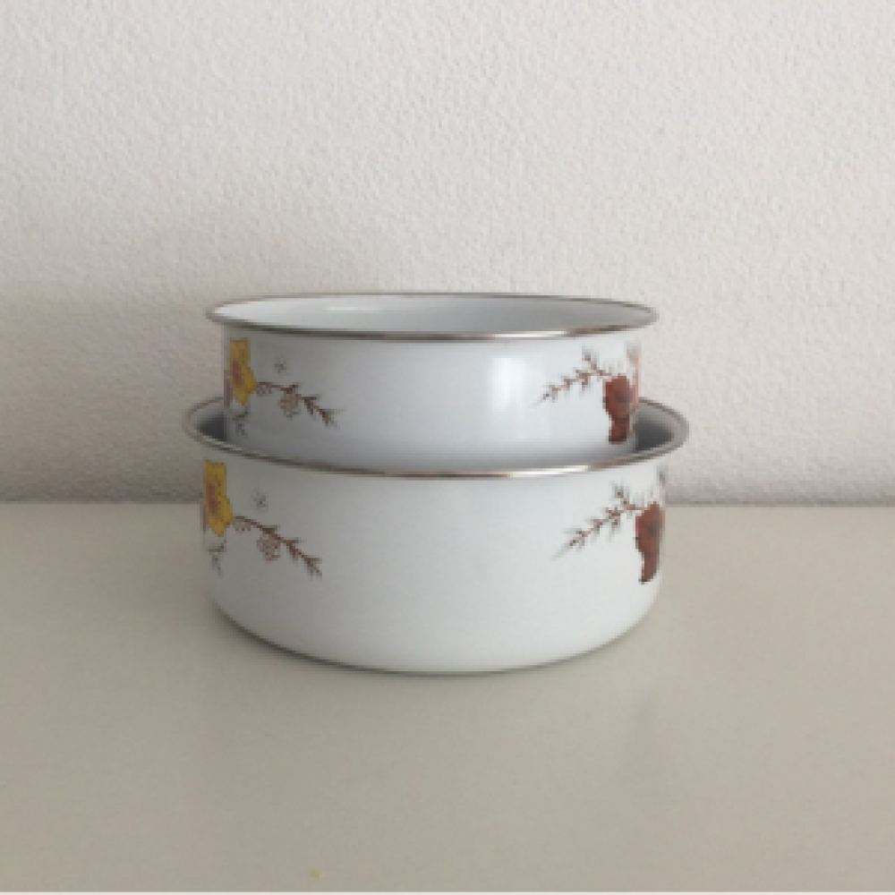 De Emaille nestschalen zijn in een zeer goede vintage staat.