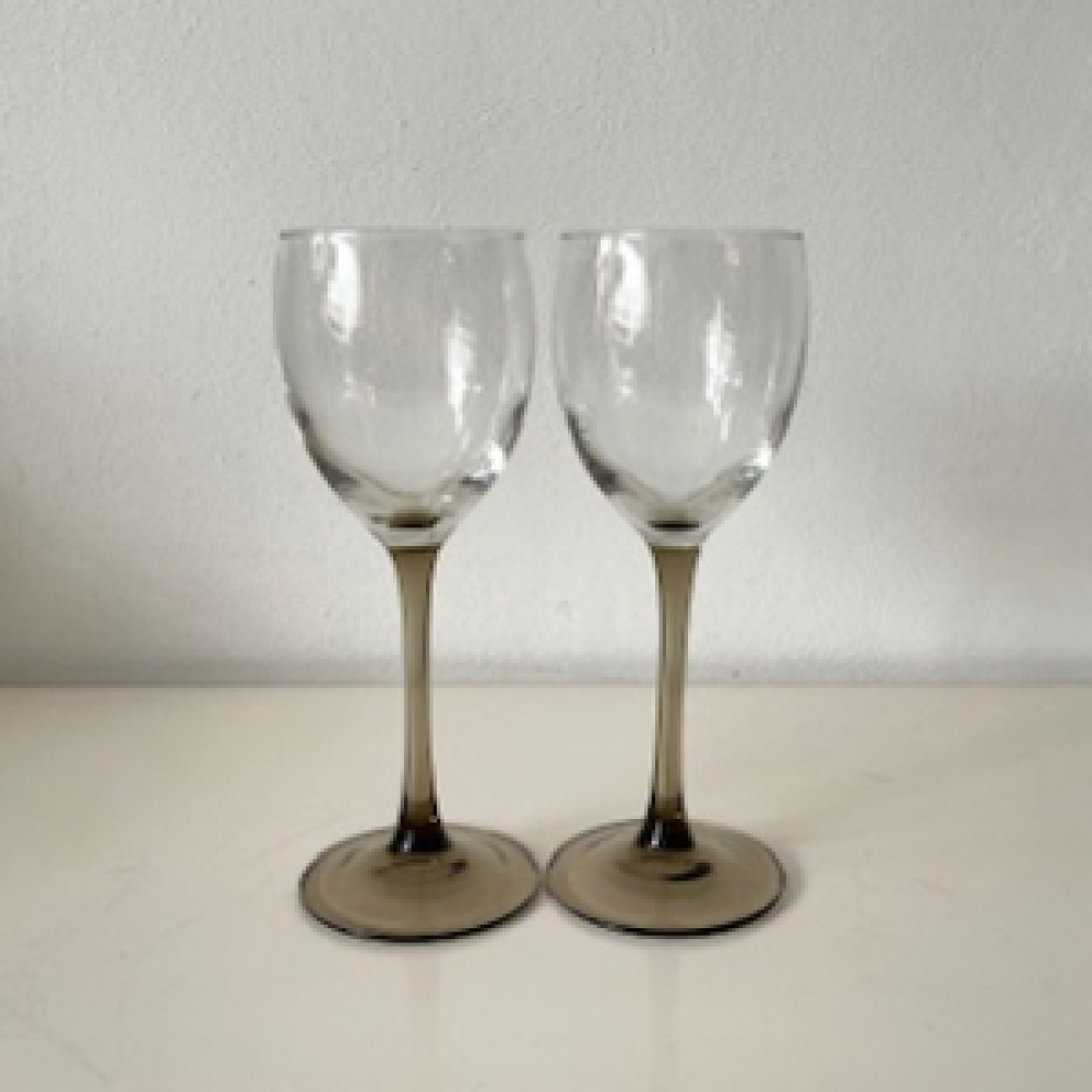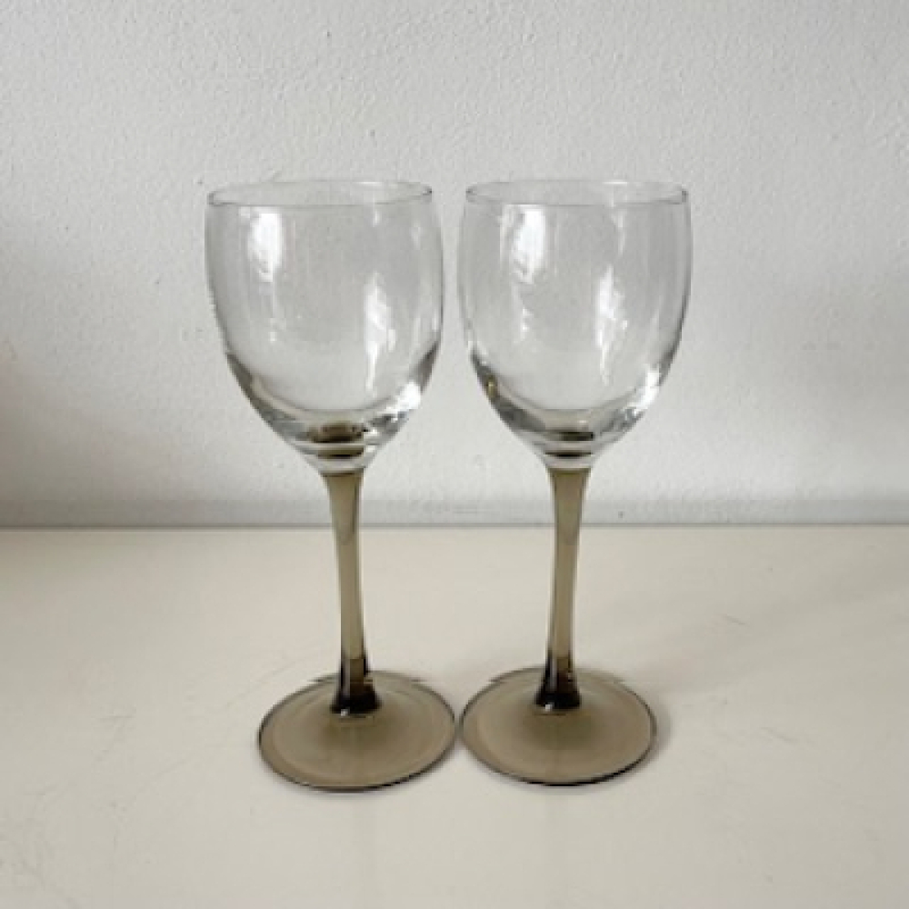 2 Wijnglazen met bruine voet - France