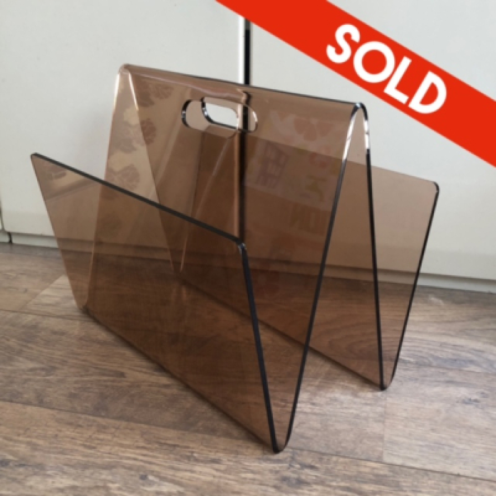 Design lectuurbak / krantenbak / magazine houder van bruin transparant plexiglas.