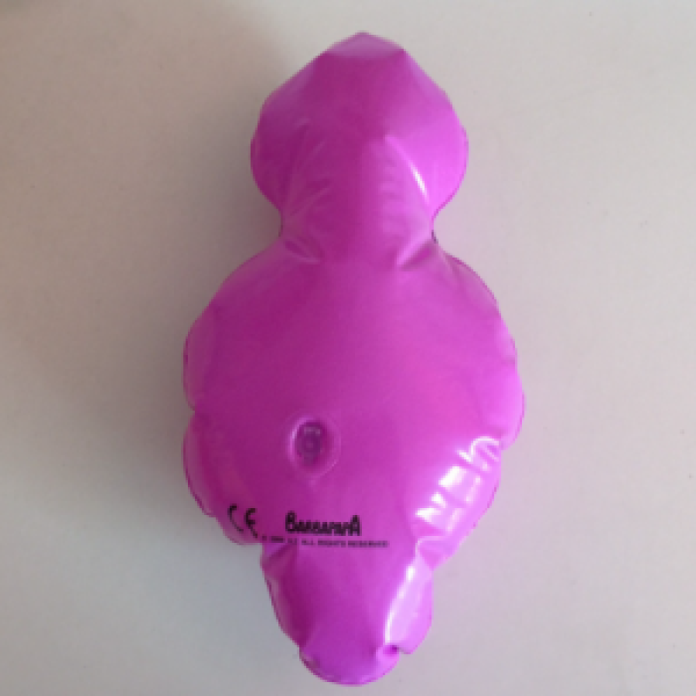 Leuk opblaasbaar paars vrouwtje met gele bloemetjes als haarband.