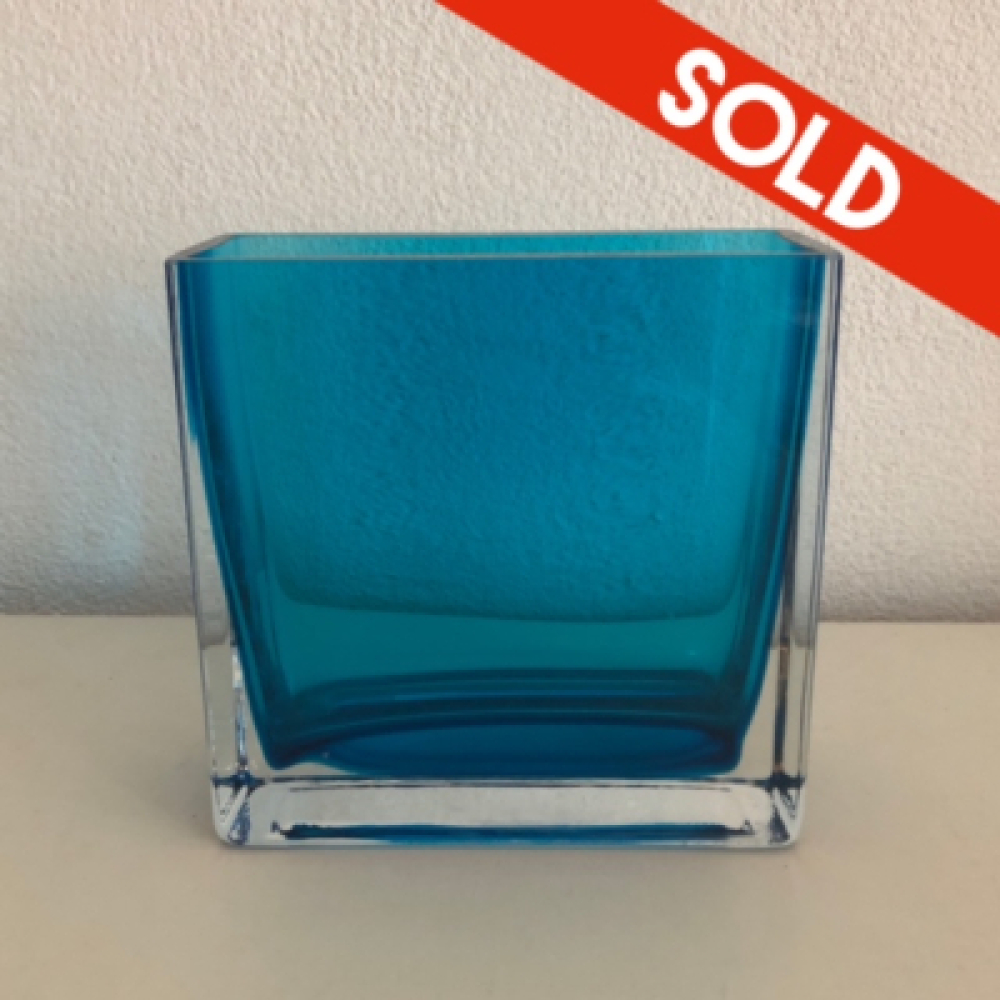 Mooie rechthoekige vaas gemaakt van zwaar aqua blauw Murano glas.