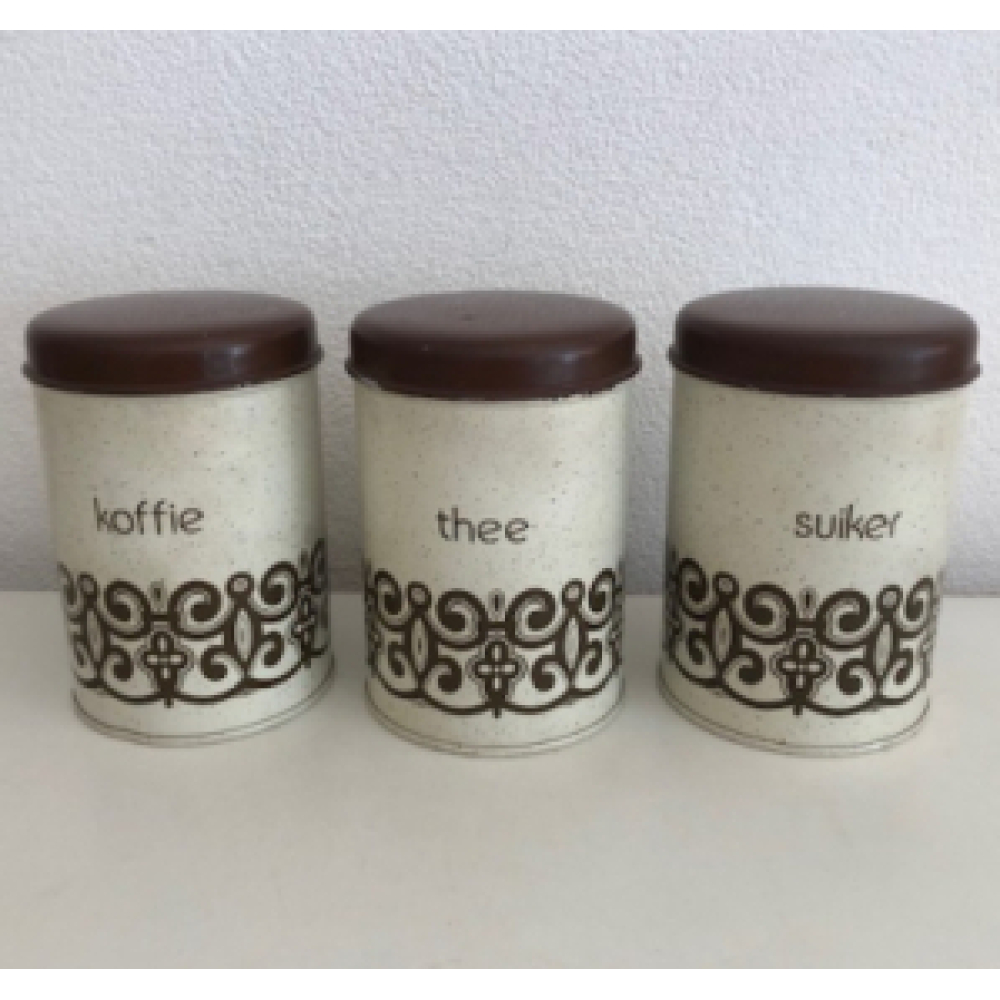 Mooie beige met bruine retro design voorraad blikken van Brabantia uit de zeventiger / tachtiger jaren.