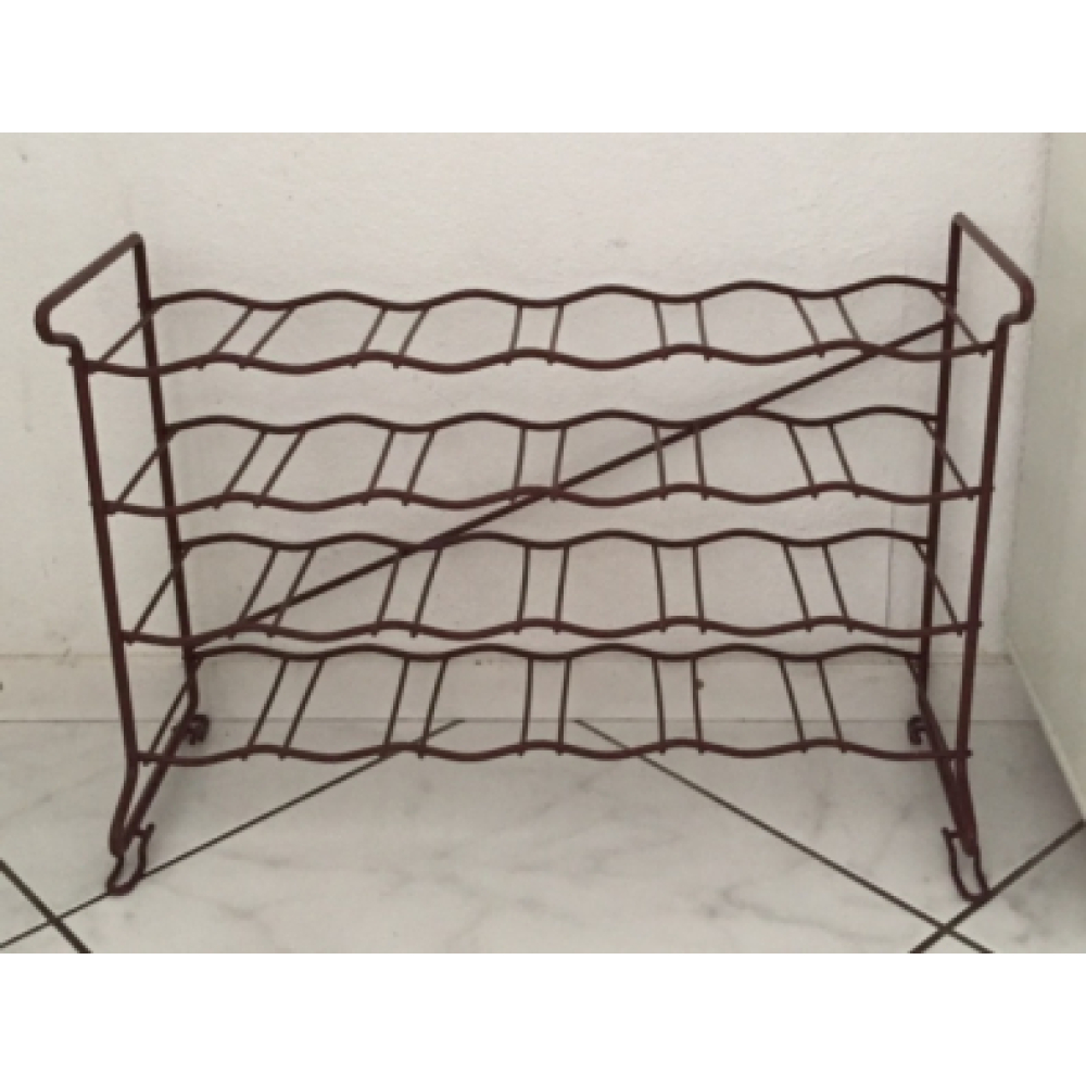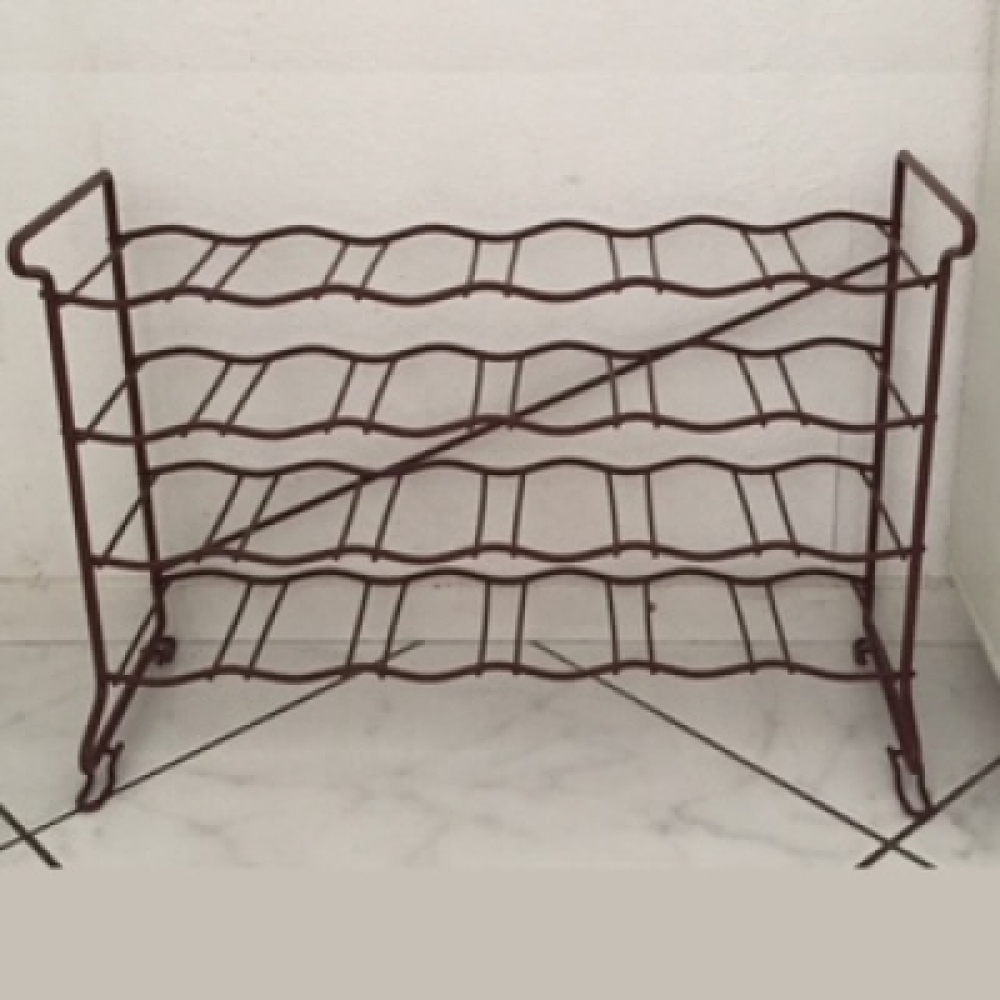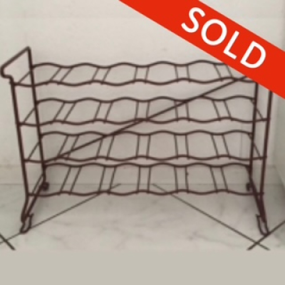 Vintage flessenrek in een bruine kleur. Het wijnrek heeft plaats voor 24 flessen (4x6) en kan veilig, stevig op een zelfde Tomado design rek worden gestapeld. Het rek is in een vintage gebruikte conditie en heeft tekenen van gebruik behorende bij de leeftijd, zie foto's. De foto's maken deel uit van de omschrijving.