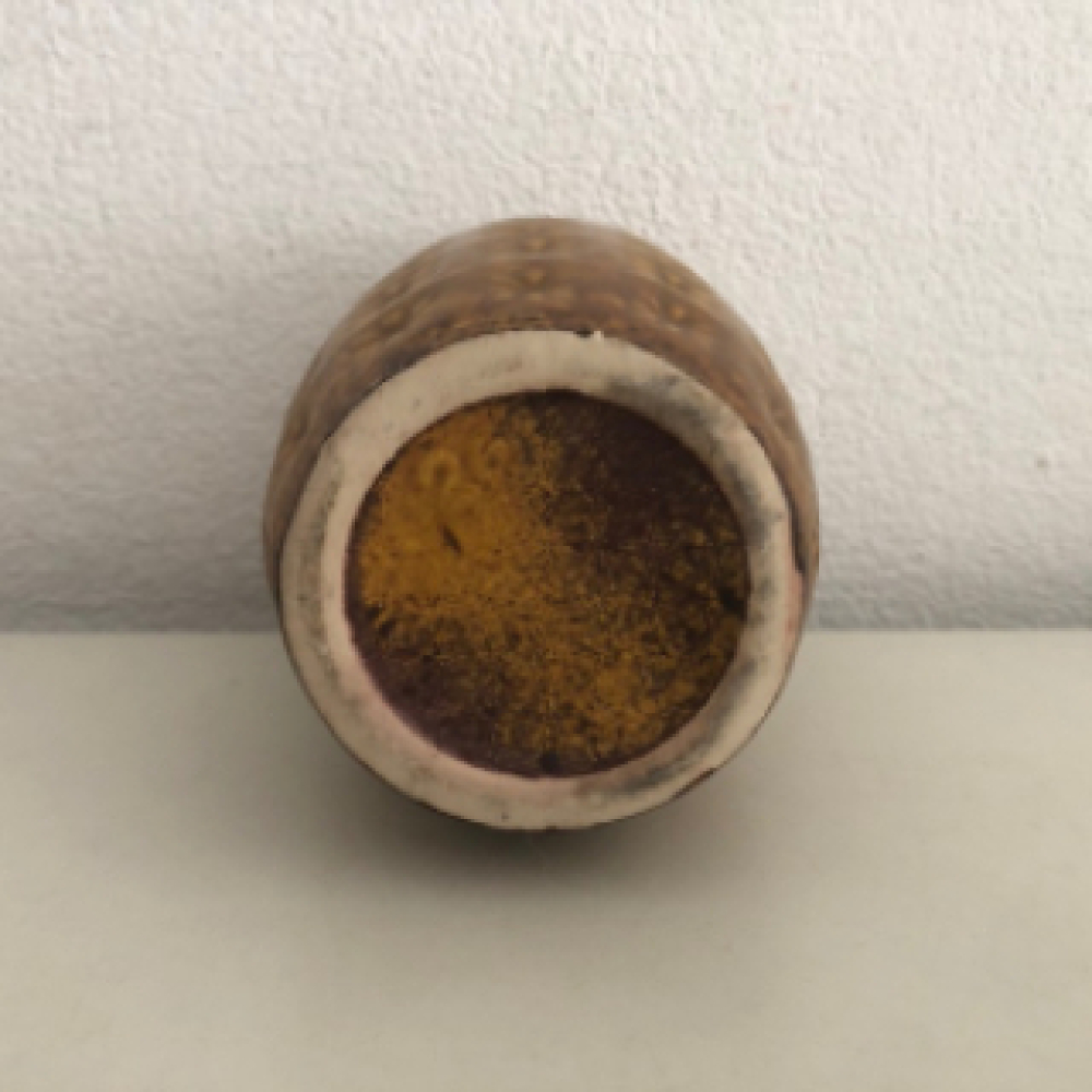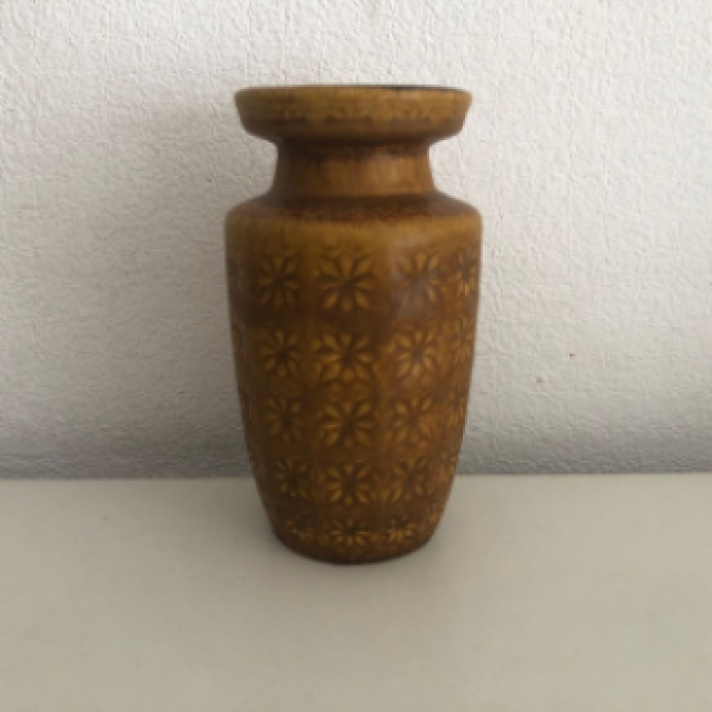 Mooie bruine vintage gemerkte vaas met sterren, dit decor noemen ze Prisma.