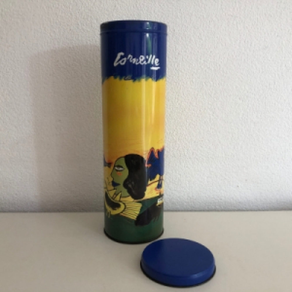 Leuk voorraadblik met Corneille afbeelding om neer te zetten of bijvoorbeeld spaghetti in te bewaren.