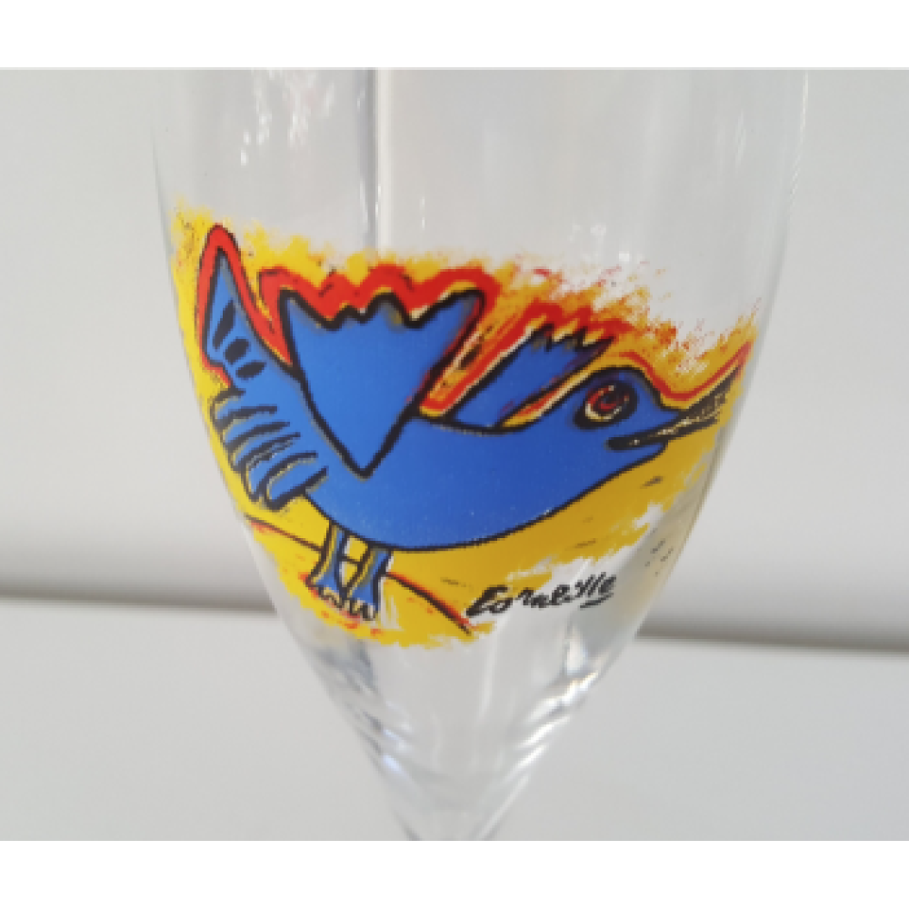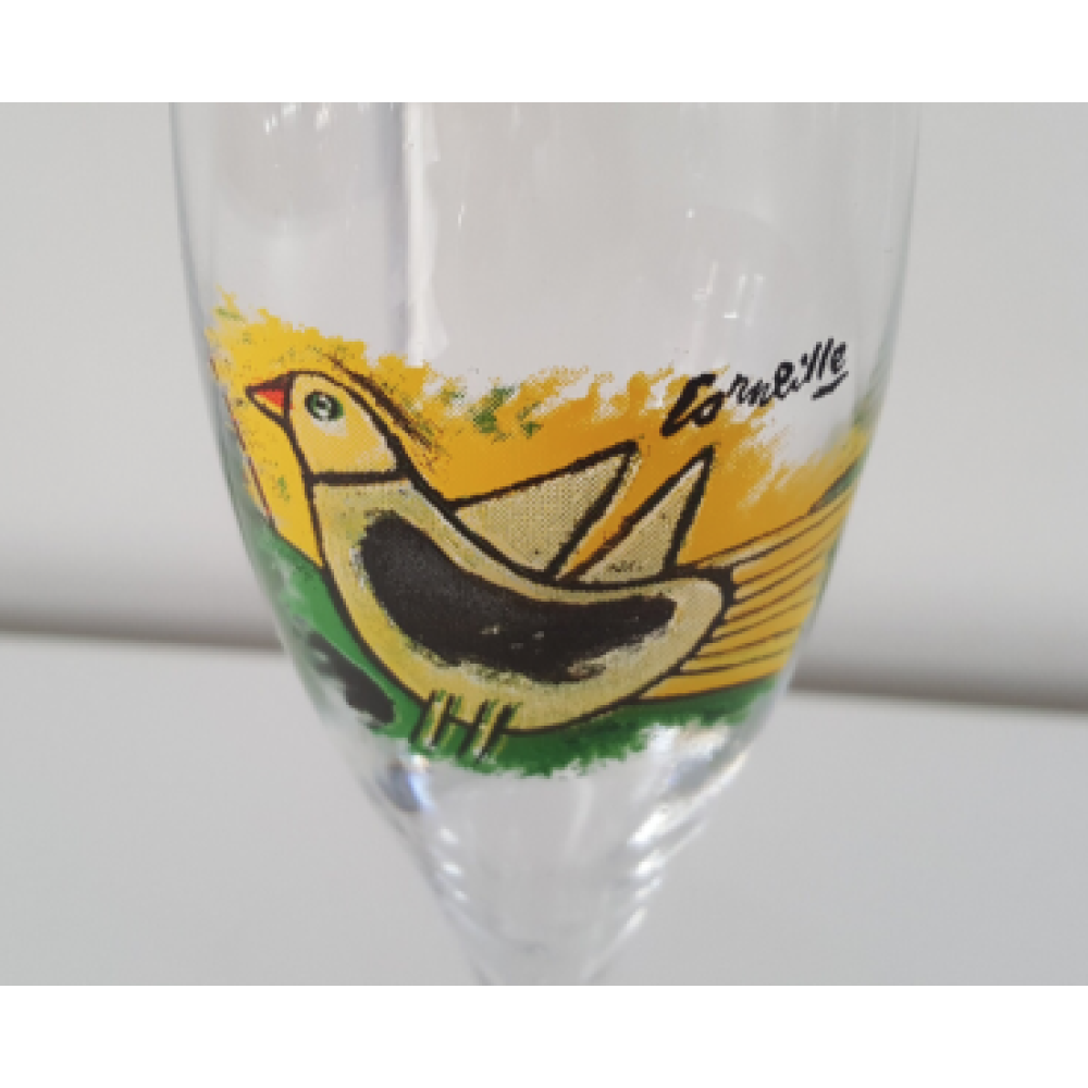 3x Retro originele Corneille champagne glazen - wijn sherry glazen. Alledrie met verschillende designs; geel en blauw hebben een vogel afbeelding en met groen is een kat afgebeeld. De 3 glazen zijn in een goede vintage gebruikte conditie. De kleuren van de print zijn nog mooi helder, zie foto's. De foto's maken deel uit van de omschrijving.