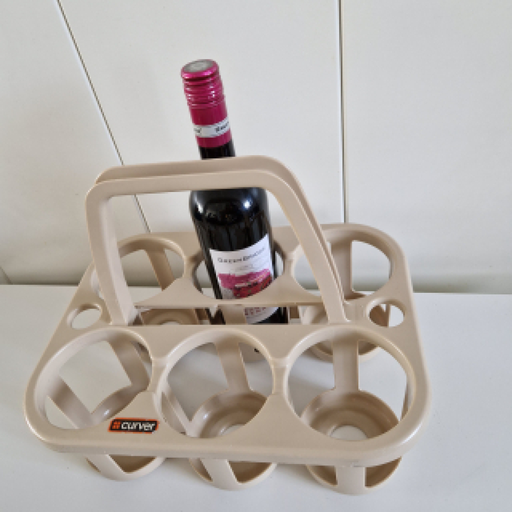Mobiel flessenrek in beige uitvoering om 6 flessen in te dragen. Handig item tijdens boodschappen doen om in 1 hand 6 flessen te kunnen dragen. Uiteraard ook leuk als decoratie in de woonkamer en of woonkeuken.
