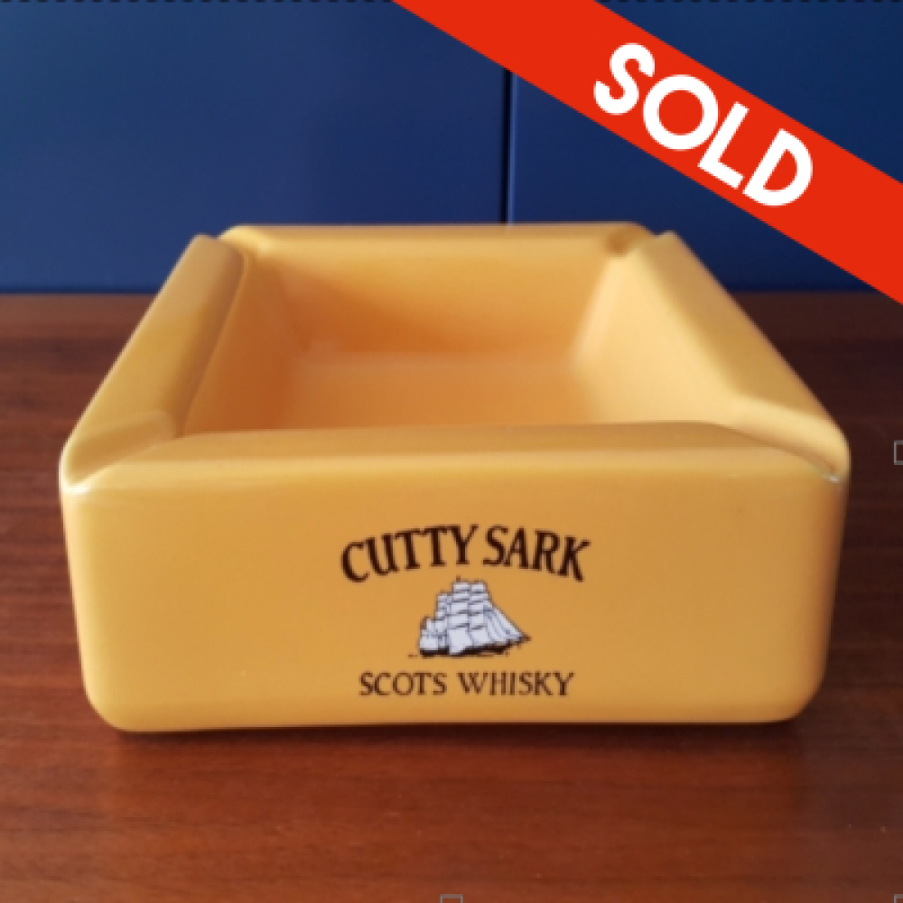Een leuke gele asbak met reklame opdruk Cutty Sark Scots Whisky