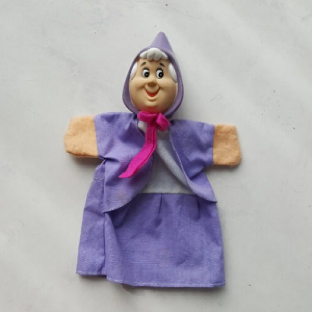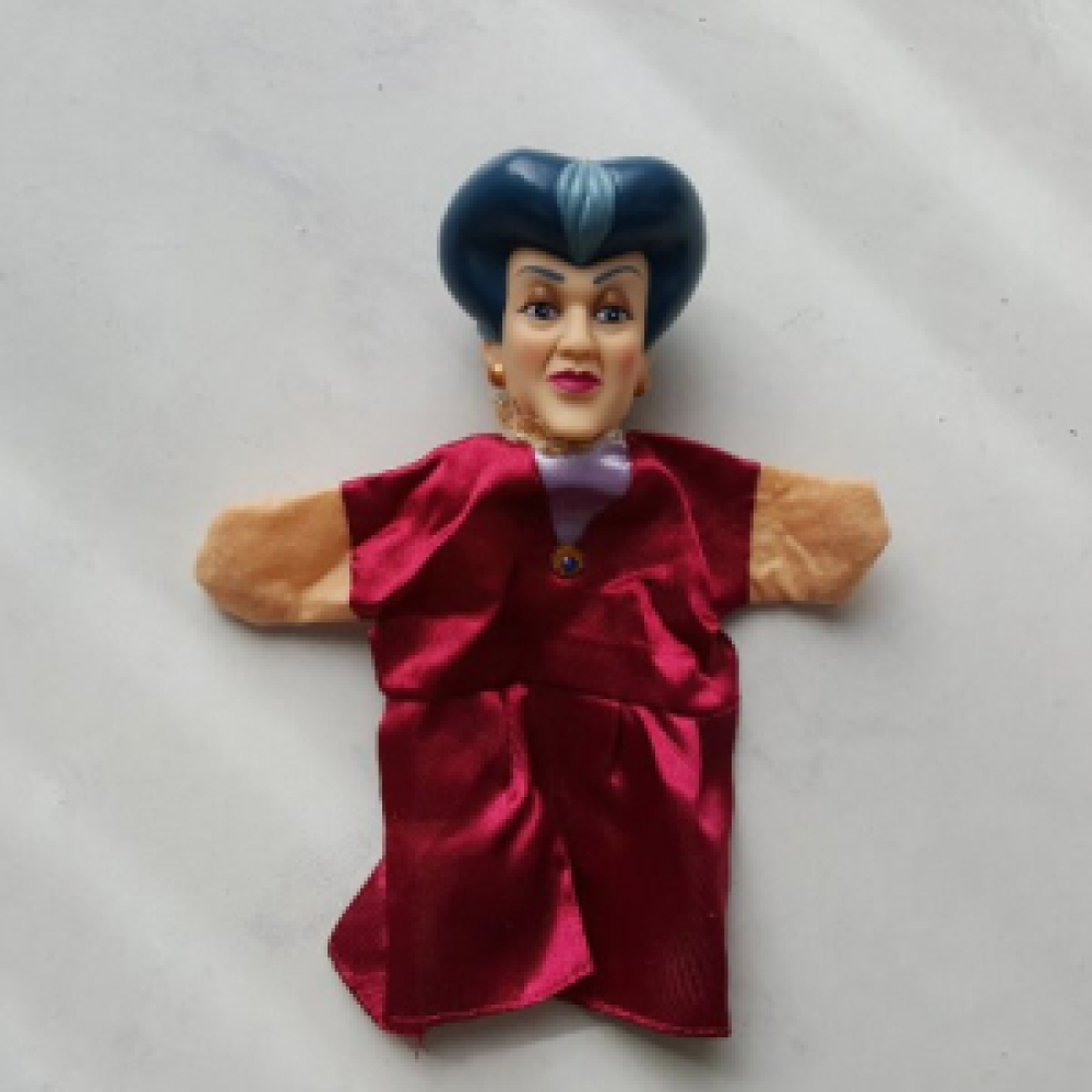 Jaren '80 handpoppen uit de Disney film Assepoester. Assepoester, De Prins, Pieter, Stiefmoeder, Goede Fee en Tom. Dit is een compplete set van 6 vintage handpoppen. De hoofden zijn