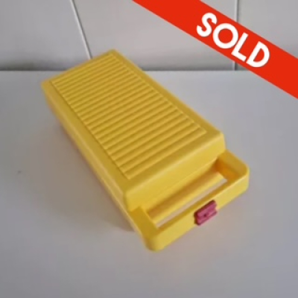 De koffer is Geel gekleurd en heeft ruimte voor 12 muziek cassettes