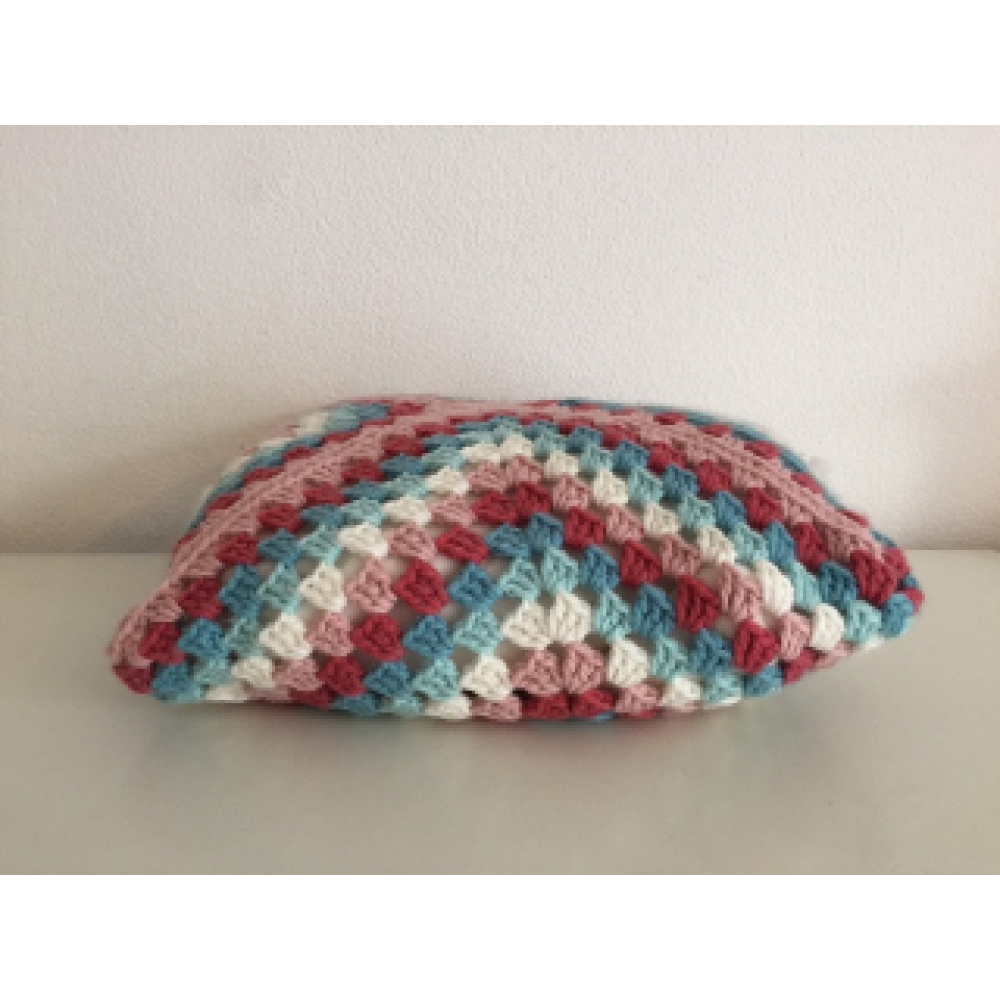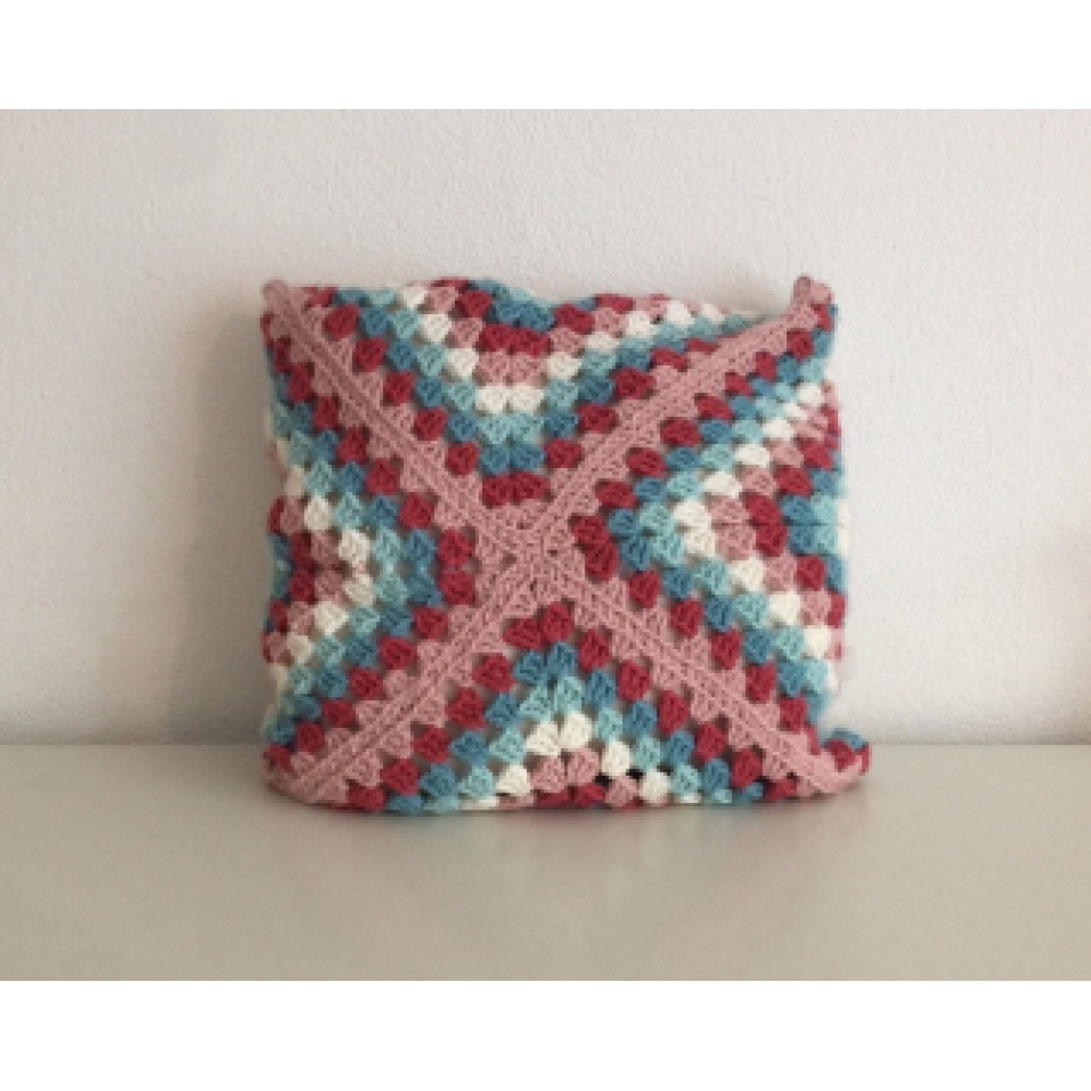 Het Granny square gehaakte kussen is in een goede vintage staat.
