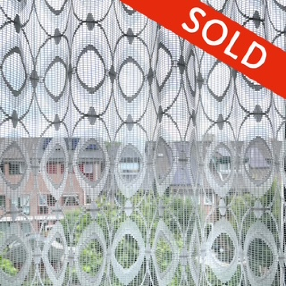 Prachtig cirkel design uit de zestiger zeventiger jaren. Mooie witte vitrage met een ongekende psychedelische decor.