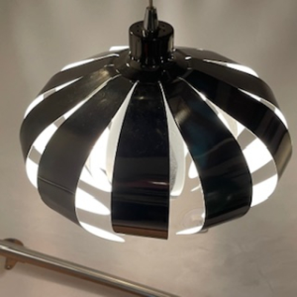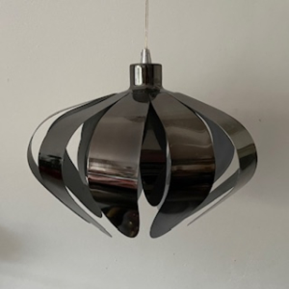 Mooie Marksklöjd zilver grijze MCM Zweden hanglamp. Vintage Scandinavische design hanglamp uit de jaren '70. De Zweedse lamp heeft een uiterlijk van een metalen bloem.
