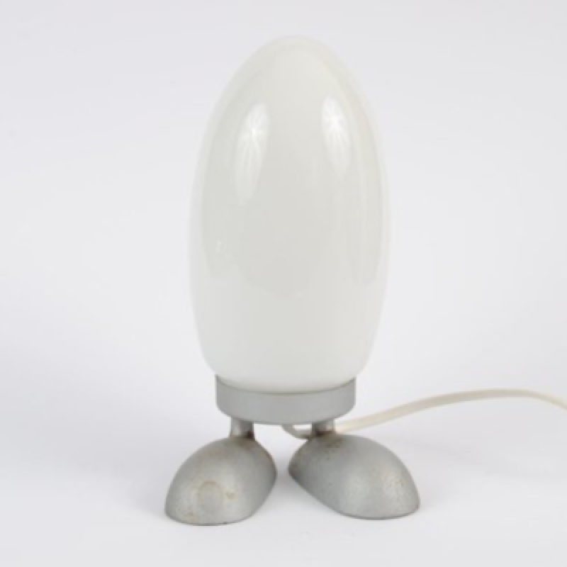 Het Fjörton tafellampje in wit glas met voetjes van Ikea. Ontworpen door Tatsuo Konnoin de jaren '90. Dit is een leuk eivormig mannetje,ook wel dinosaurus ei genoemd, welke past in elk interieur. De lamp is in goede vintage gebruikte conditie, zie foto's. De foto's maken deel uit van de omschrijving. Stuur ons een mail indien u meer foto's of informatie wilt.