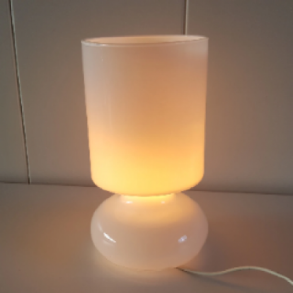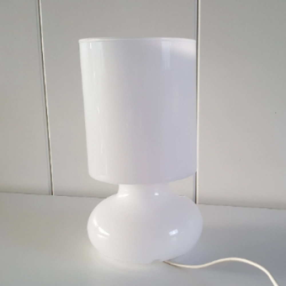 Ikea Lykta tafellampje van wit glas. Het glas is organisch vormgegeven en past