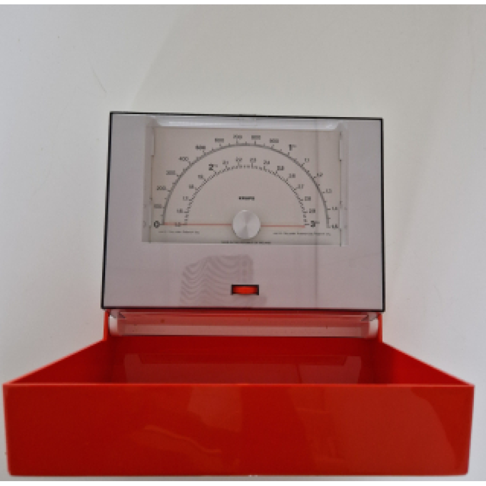 Retro jaren 60 - 70 keukenweegschaal in de kleuren: Oranje met wit. Een mooie space age design wand weegschaal voor makkelijk gebruik in de keuken. Wil je wat wegen dan klap je het oranje gedeelte uit, ben je er klaar mee dan klap je hem weer in, dus ook nog eens ruimte besparend. Een mooi compact vormgegeven weegschaal. De wand weegschaal is in een goede gebruikte vintage staat, zie foto's. De foto's maken deel uit van de omschrijving.