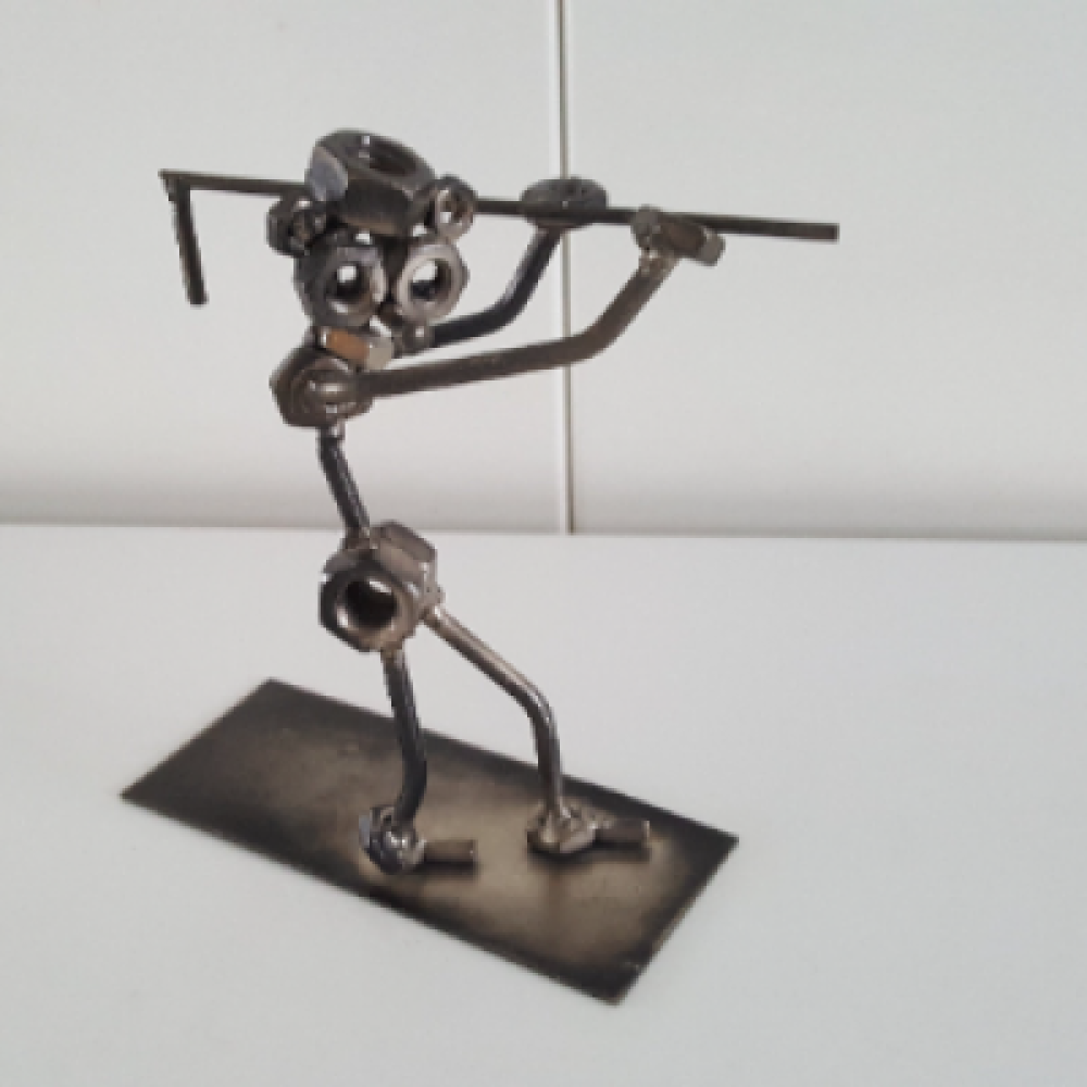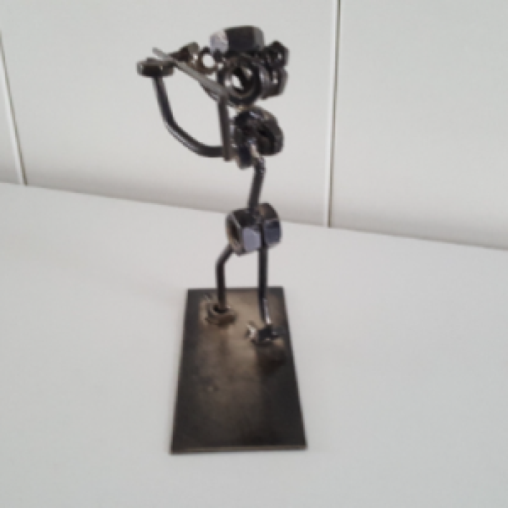 Vintage decoratie stuk, sculptuur,standbeeld gemaakt van moeren en staaldraad