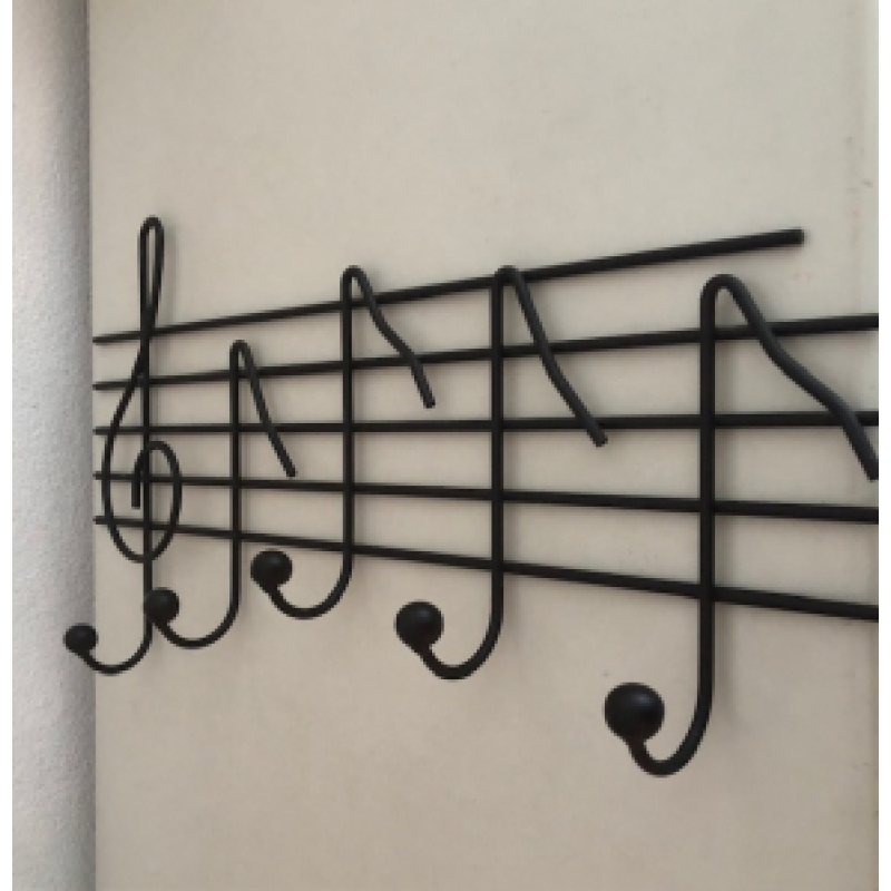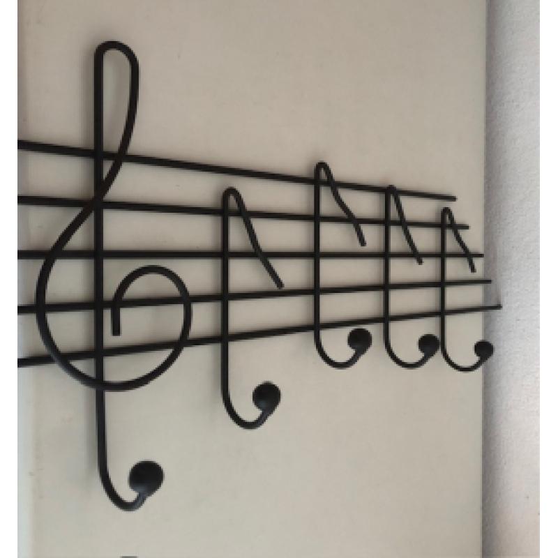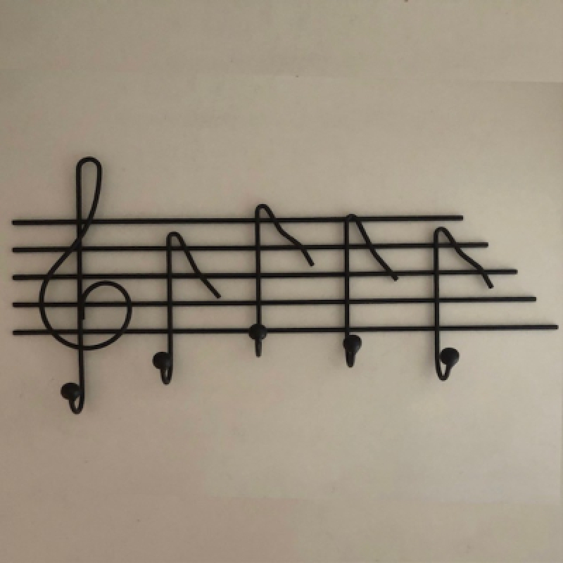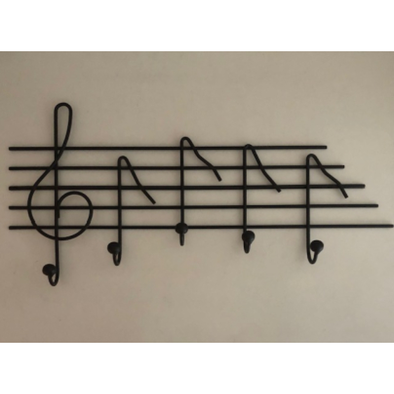 Mooie zwarte mid century moderne kapstok met 5 haken in de vorm van muzieknoten.