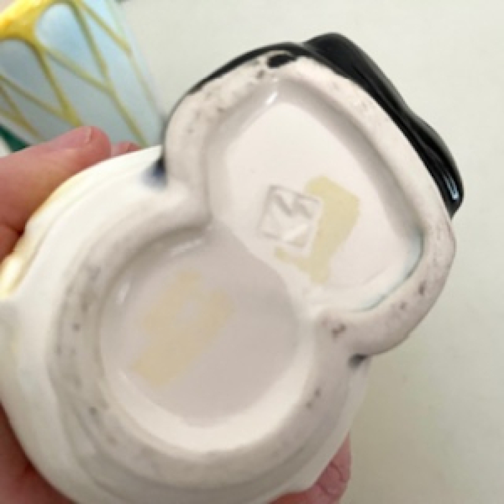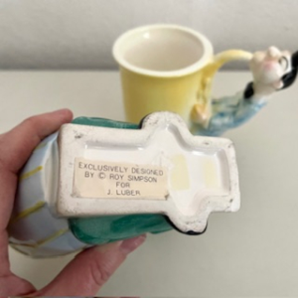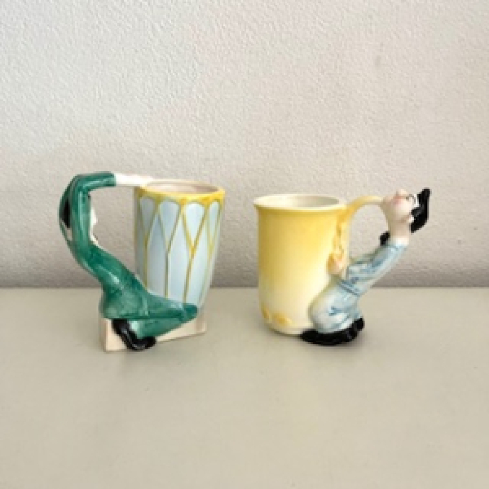 Bijzondere vintage muzikanten bekers uitgegeven in de jaren '60. Grappige design mokken in de vorm van een saxofonist en een congueros (congo speler). Ontworpen door Roy Simpson voor J. Luber. Ze zijn beide met de hand geschildert en in een goede vintage conditie, zie foto's. De foto's maken deel uit van de omschrijving.