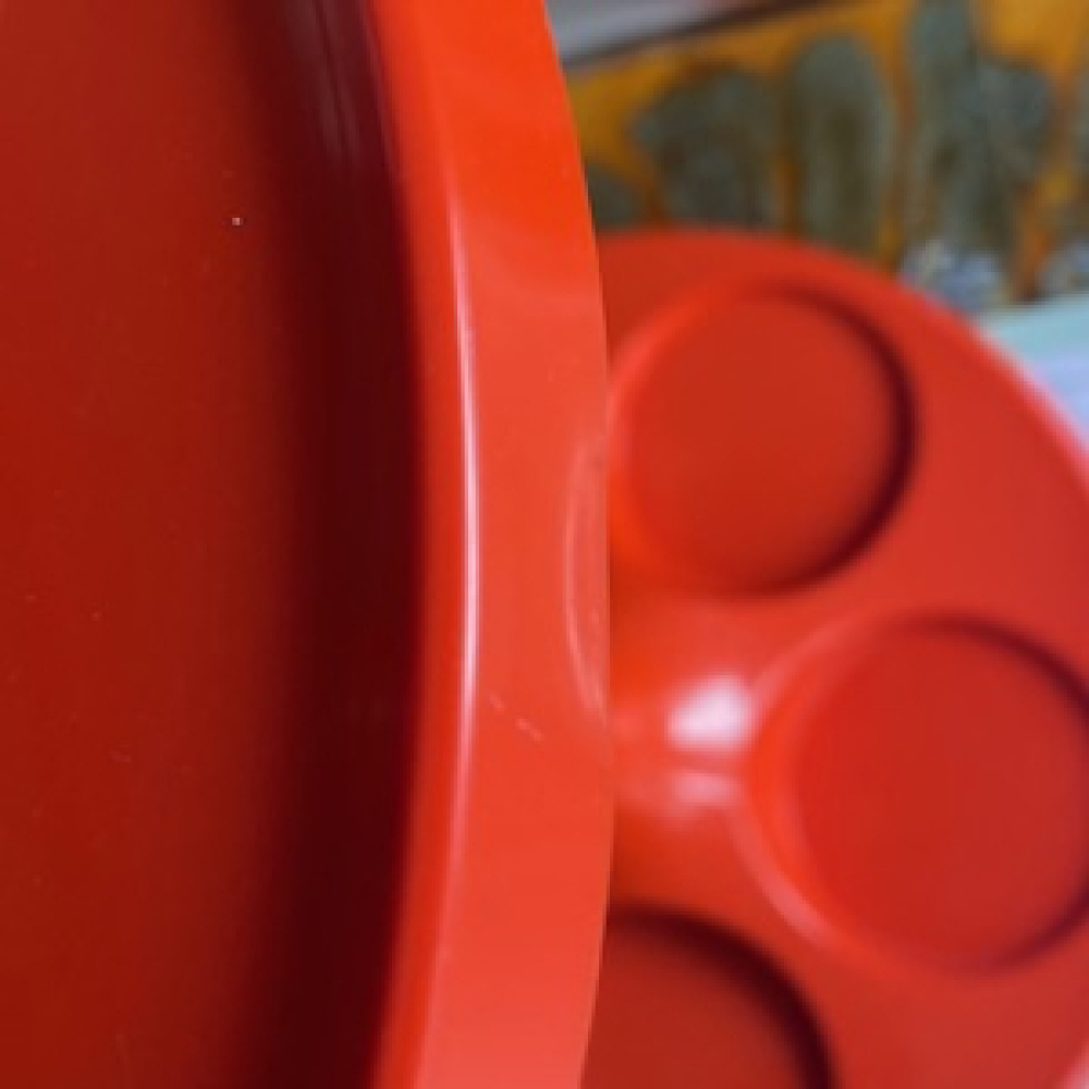 Het bovenstuk kan als bijzettafel gebruikt worden. Iconisch design object van Flair plastics, origineel uit de 60er 70er jaren in een Space Age design. Bij deze uitvoering zit er een ander handvat bovenop en heeft het geen tussenstuk. Leuk als decoratie in de woonkamer en, woonkeuken of in de zomer in de tuin. Het is in een vintage gebruikte staat en kan gebruikssporen hebben, super klein deukje in het plastik (valt bijna niet op),zie foto’s. Daarom goedkoper geprijsd. De foto's maken deel uit van de omschrijving.