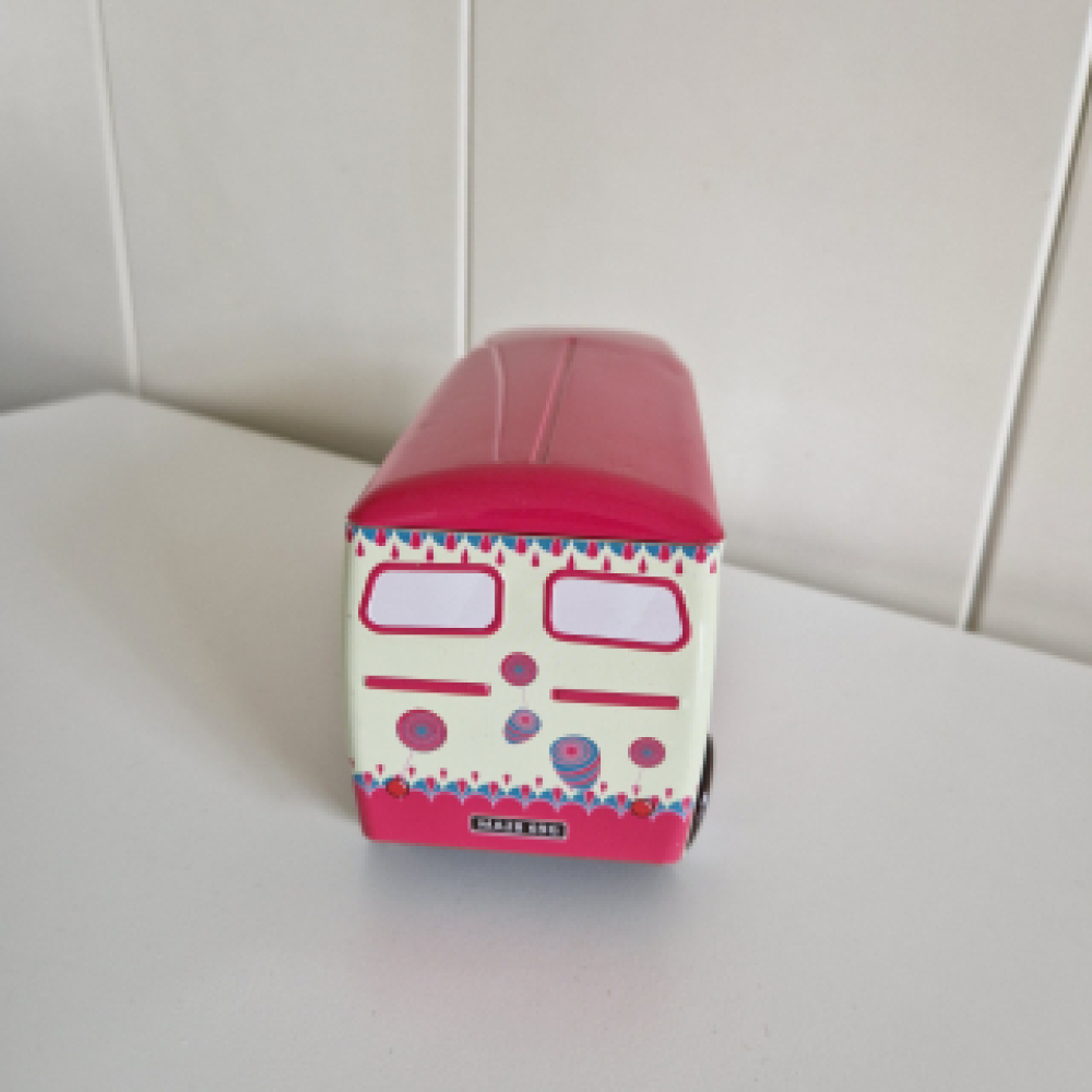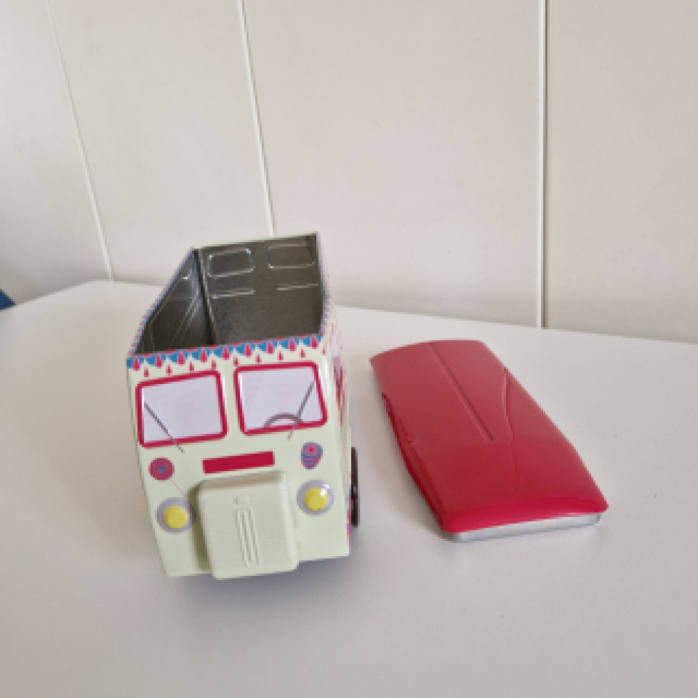 Een mooie koekblik in de vorm van een oude Peugeot bestelwagen