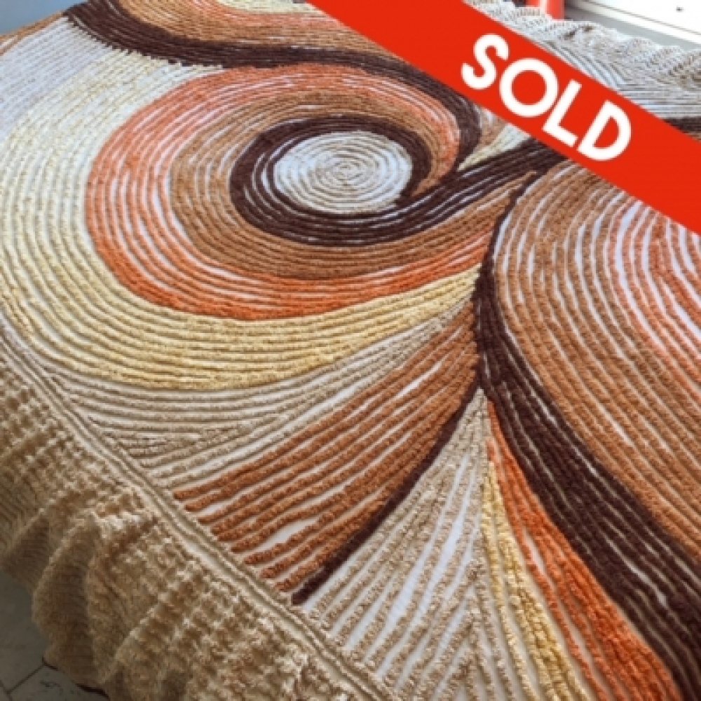 Groovy vintage deken met beige, bruin en oranje krul - swirl patroon