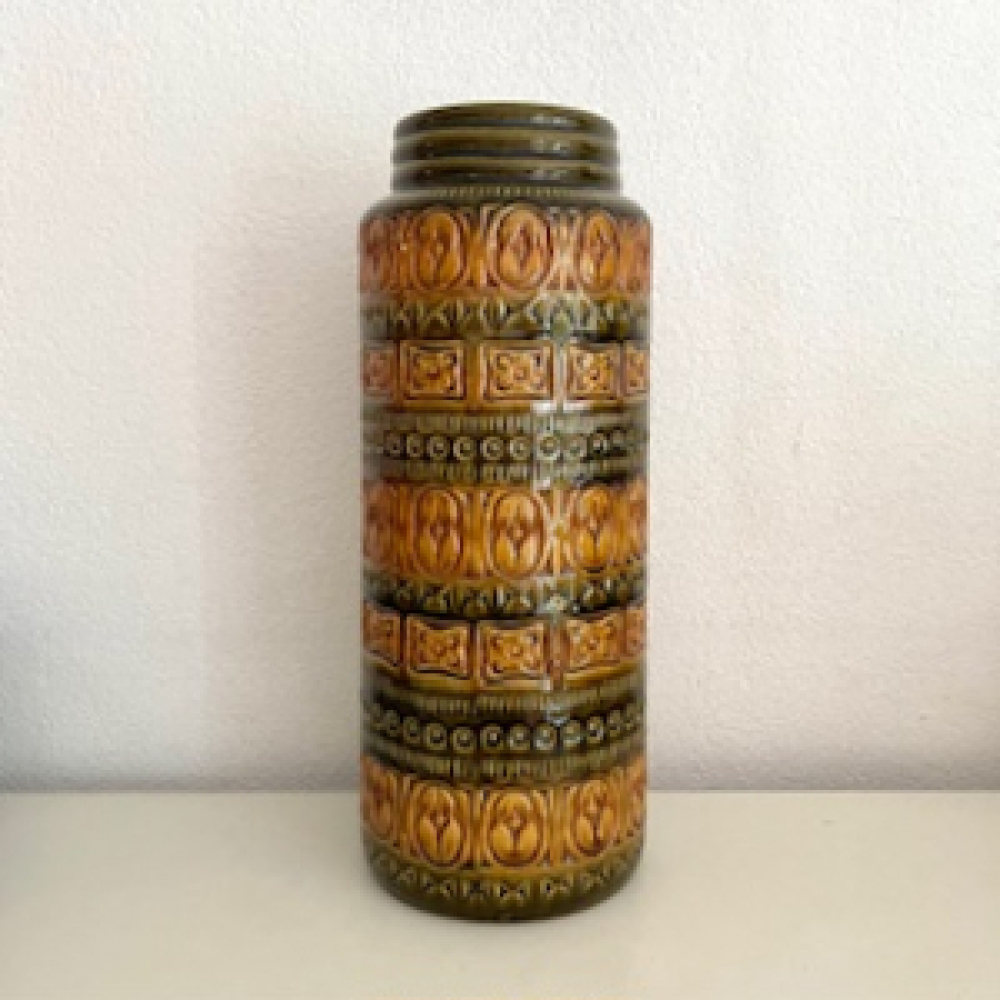 Scheurich vintage XL vaas uit West Duitsland. Okergeel met groene print uit de Foligna serie. Origineel uit de 60er 70er jaren. De vaas is in een goede vintage gebruikte conditie, zie foto's. De foto's maken deel uit van de omschrijving.