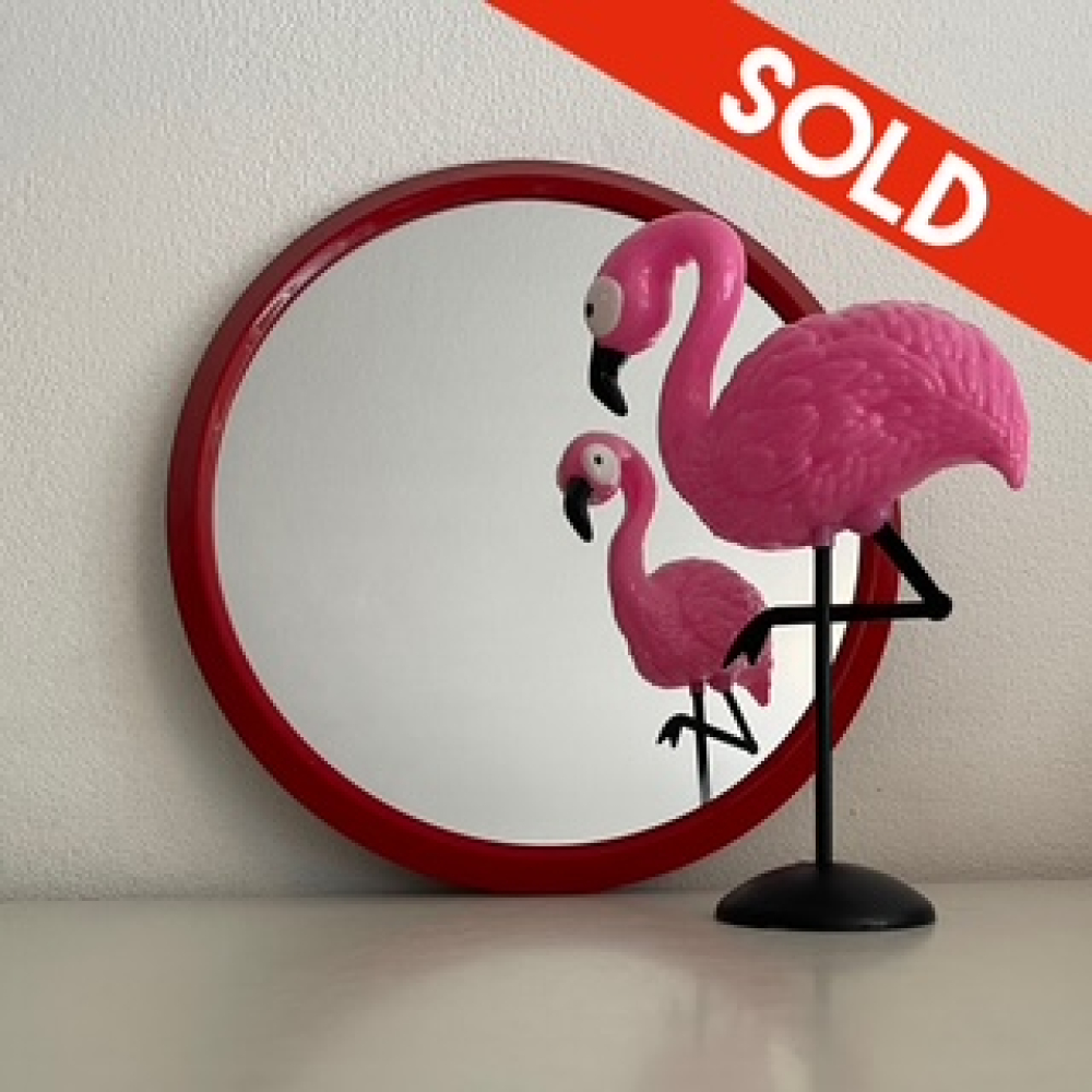 Super leuke jaren '70 spiegel in de kleur rood. De spiegel is in een vintage gebruikte staat en heeft tekenen van gebruik, zie foto's. De foto's maken deel uit van de omschrijving.