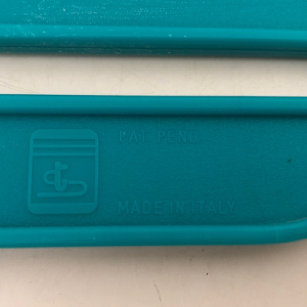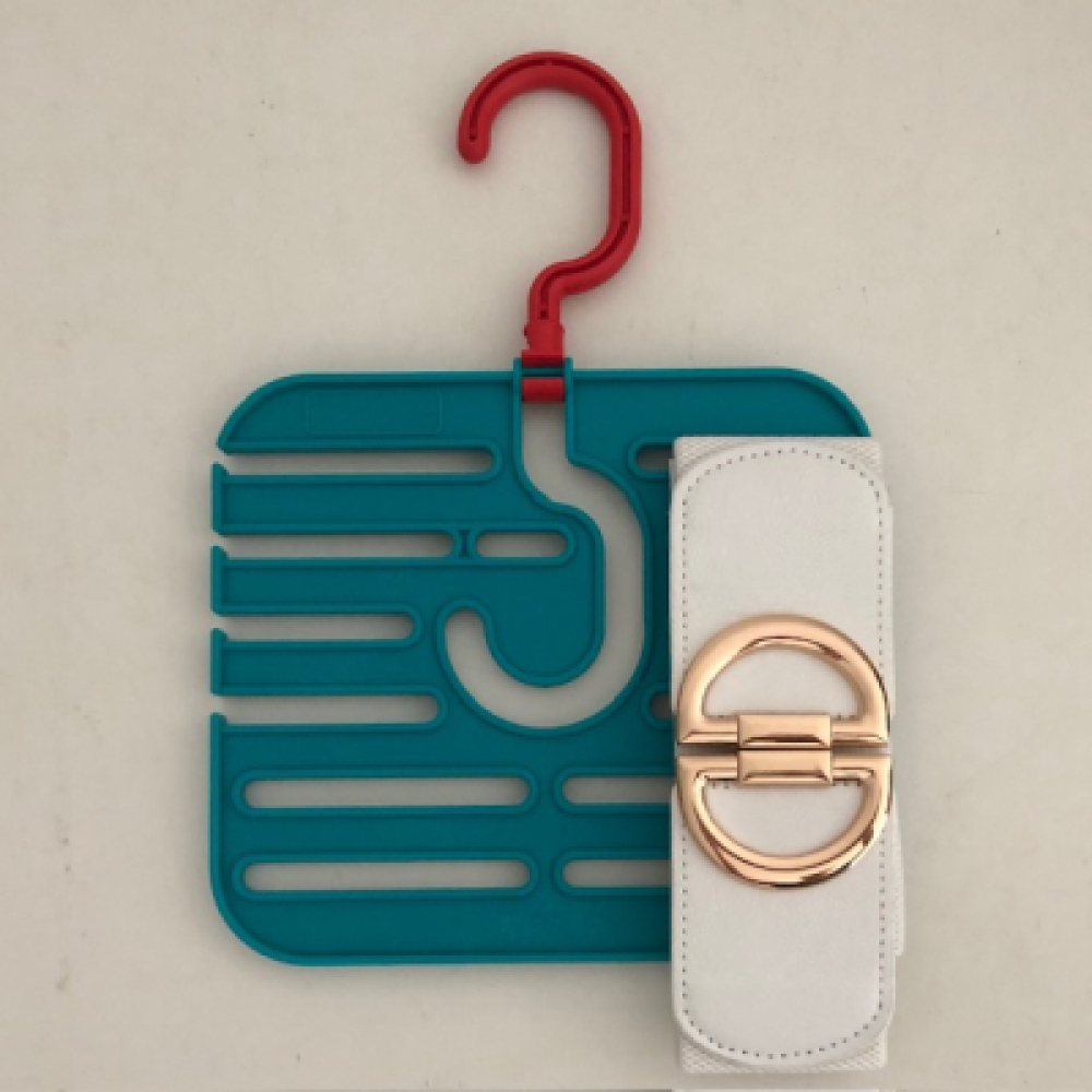 Plastik retro hanger voor bijvoorbeeld het ophangen van shawls, stropdassen, ceintuurs en riemen. Aqua blauw met rode kunststof hanger in een funky Space Age design stijl. Het is makkelijk mee te nemen op vakantie, omdat de rode haak netjes in de body van de hanger opgeborgen kan worden.