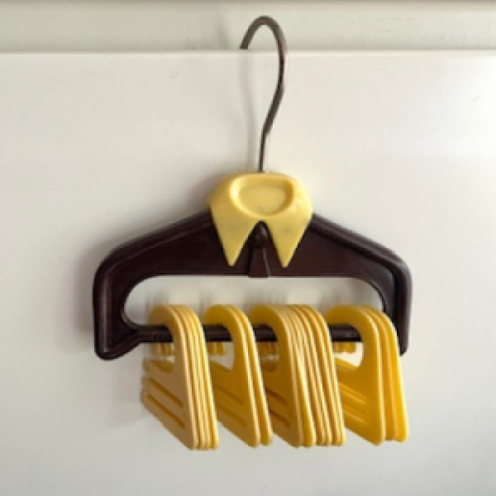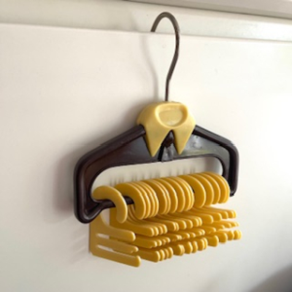 Plastic retro stropdashanger. Bruin met beige kunststof hanger om stropdassen aan te hangen.