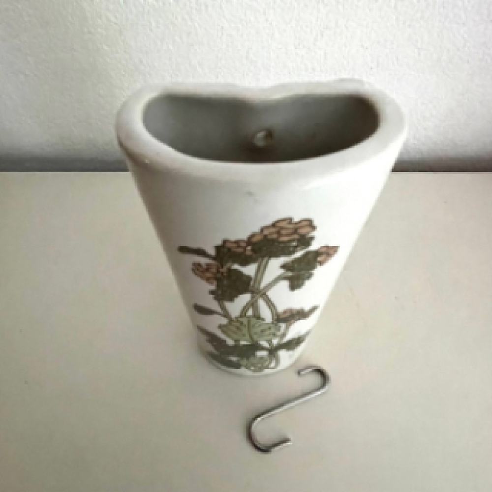Vintage waterbakje met leuke groene bloemen decor. Vul het bakje met water en hang het